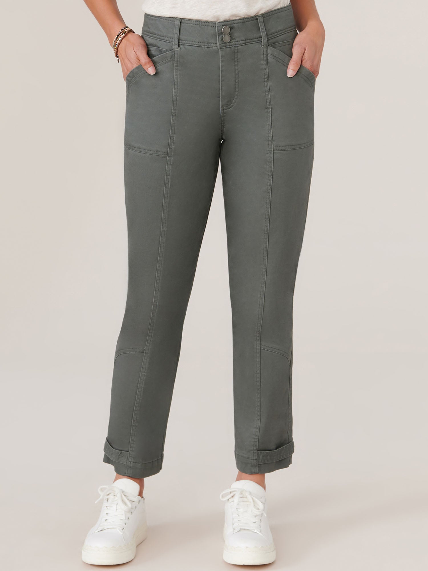 The "Ab"solution® tapered Utility Pant hugs your shape through the hips with an easy fit through the legs to the hemline.