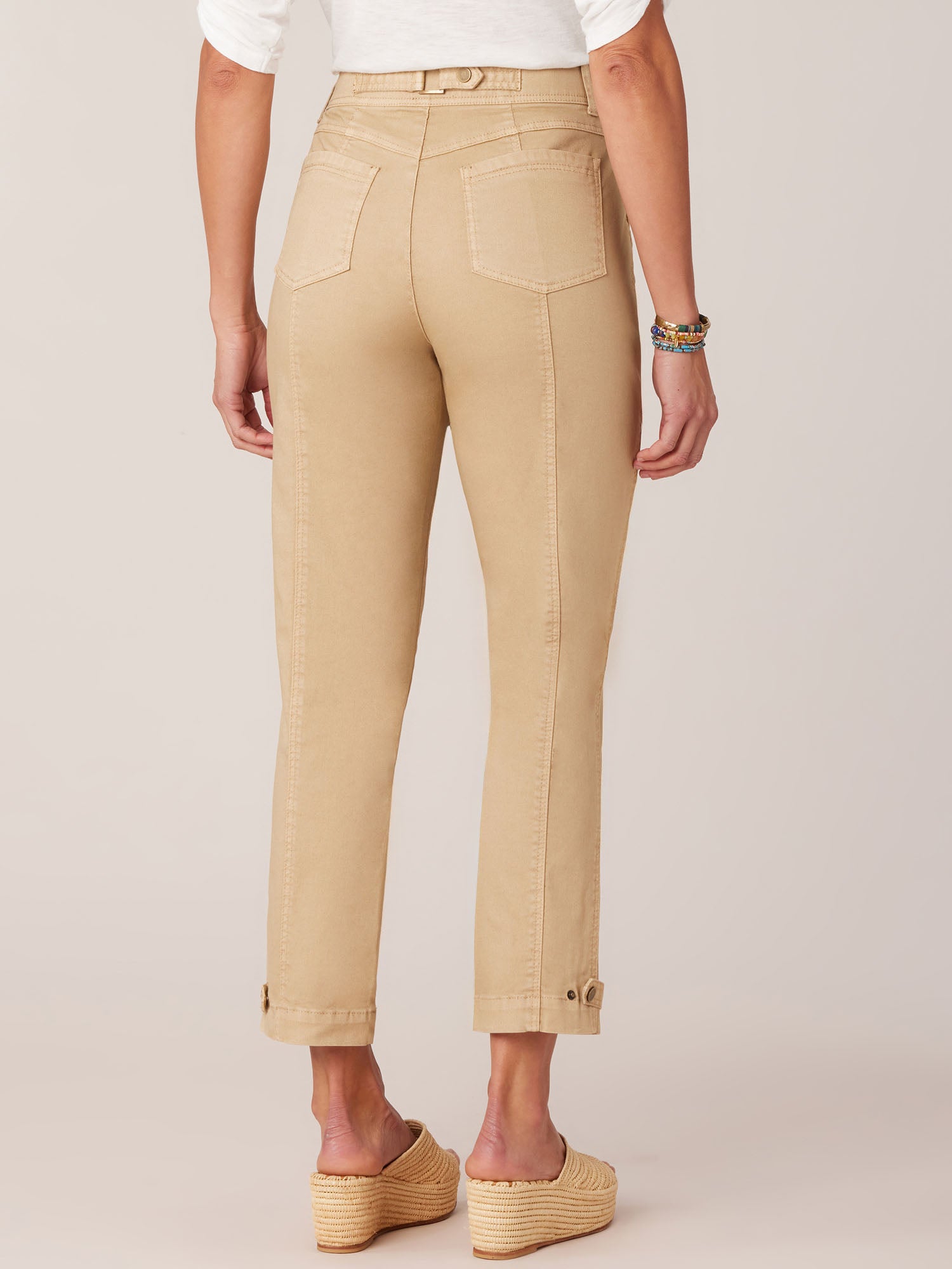 These petite Tapered Utility pants feature a relaxed fit through the hips and an easy, straight leg through the thigh with a tapered snap hem. Engineered with "Ab"solution® fit technology to smooth, support, and enhance your shape—giving you everything from a flatter tummy to a perkier rear view.