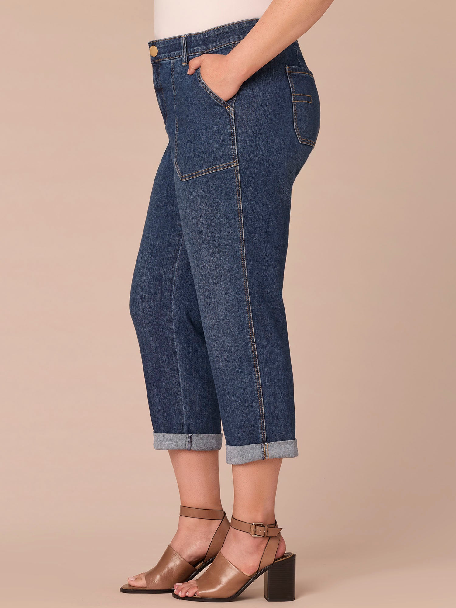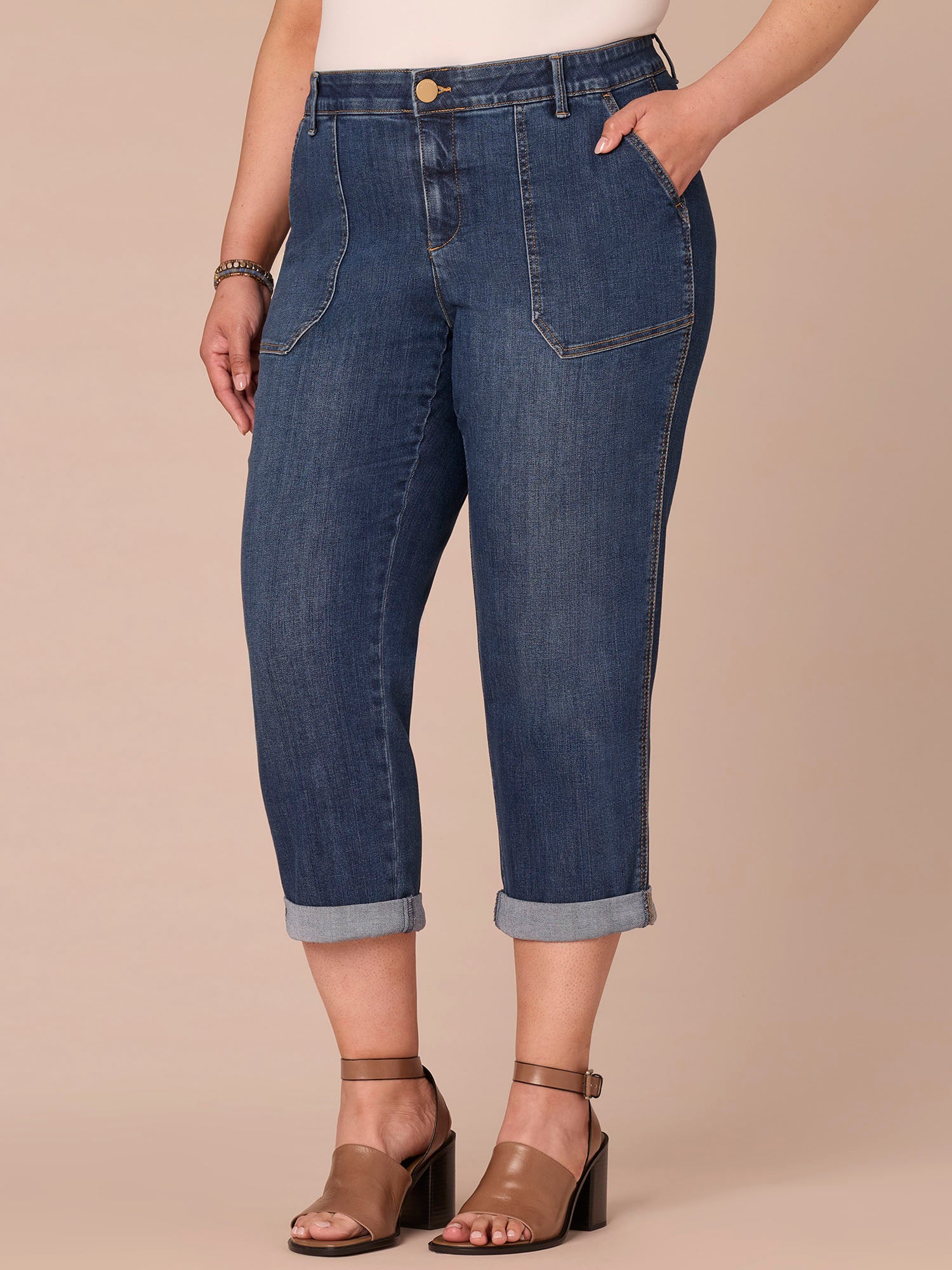 "Ab"solution® High Rise Patch Pocket Roll Cuff Plus Size Utility Jeans