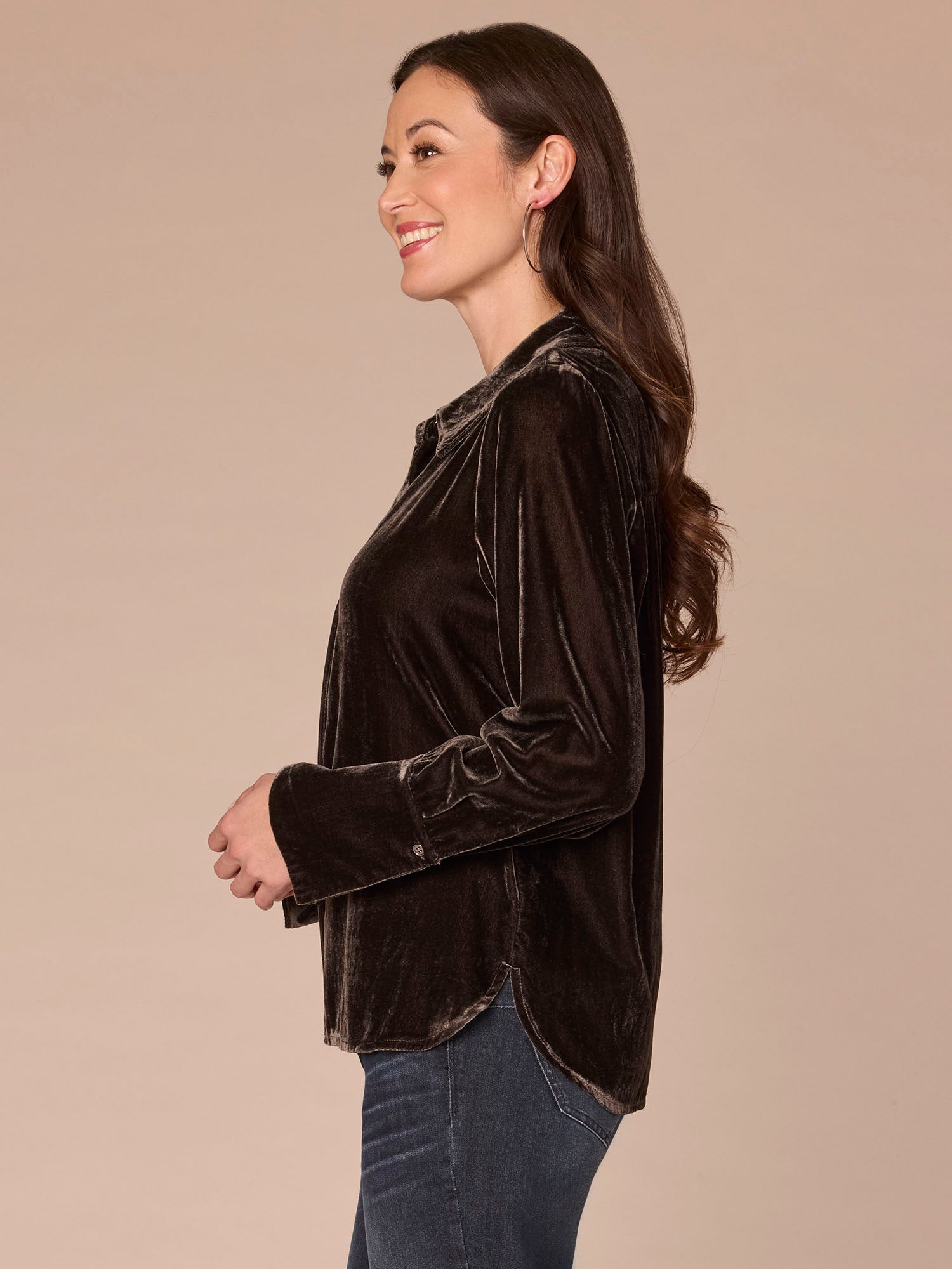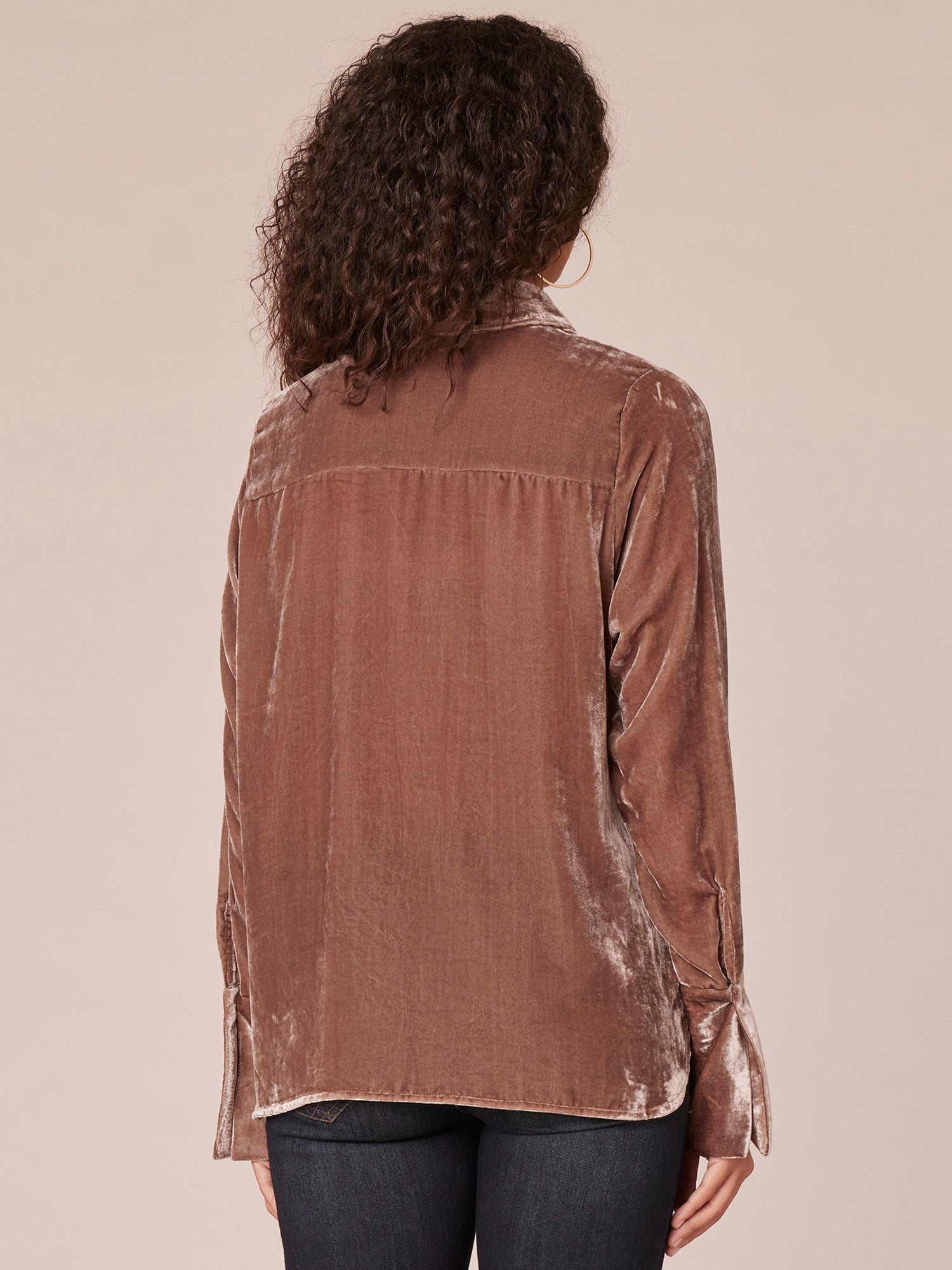 Long French Cuff Sleeve Button Down Velvet Woven Shirt