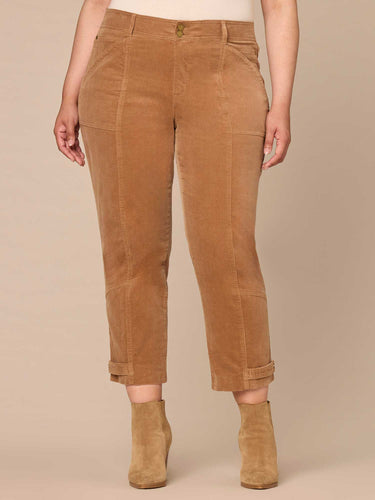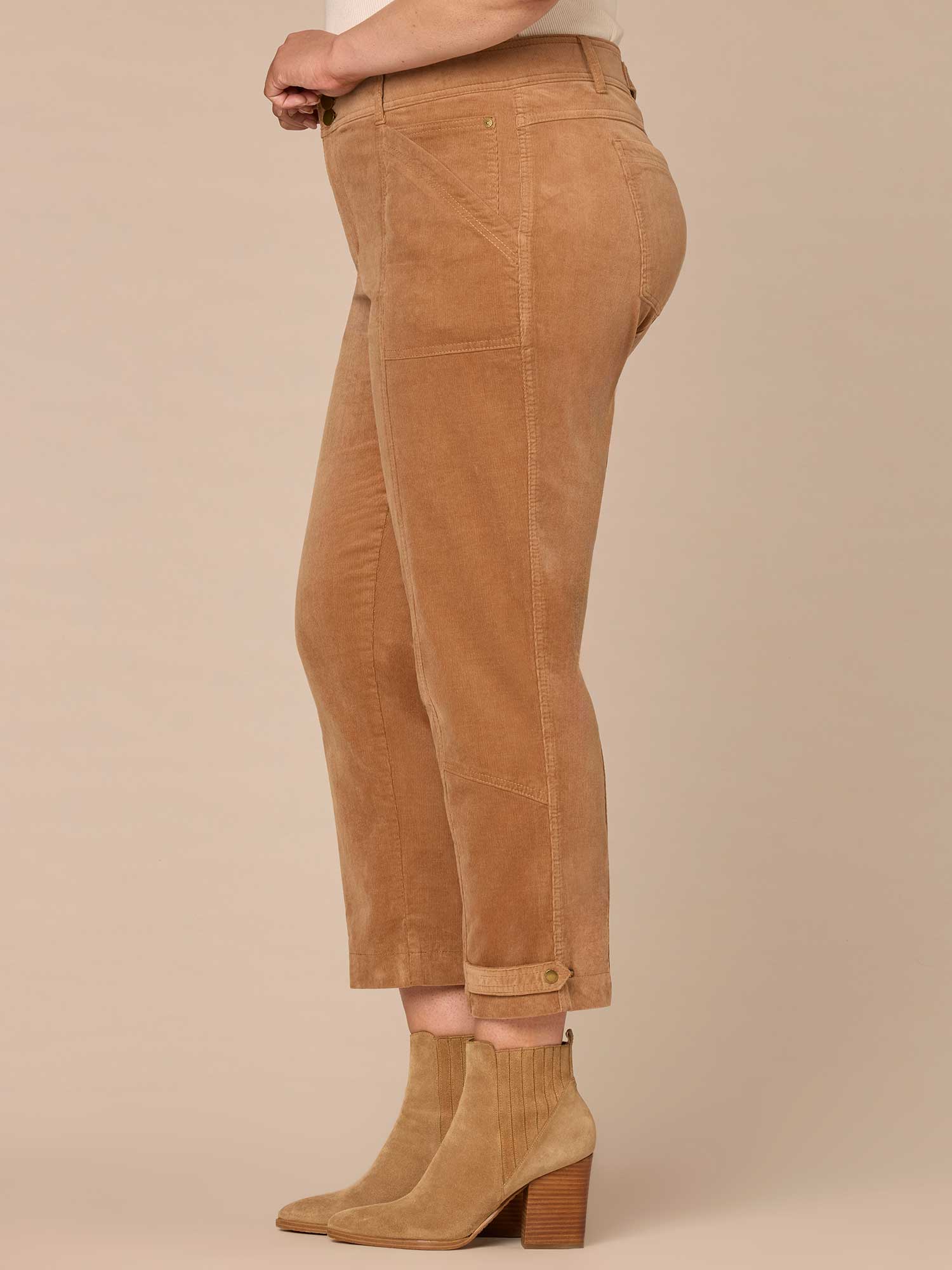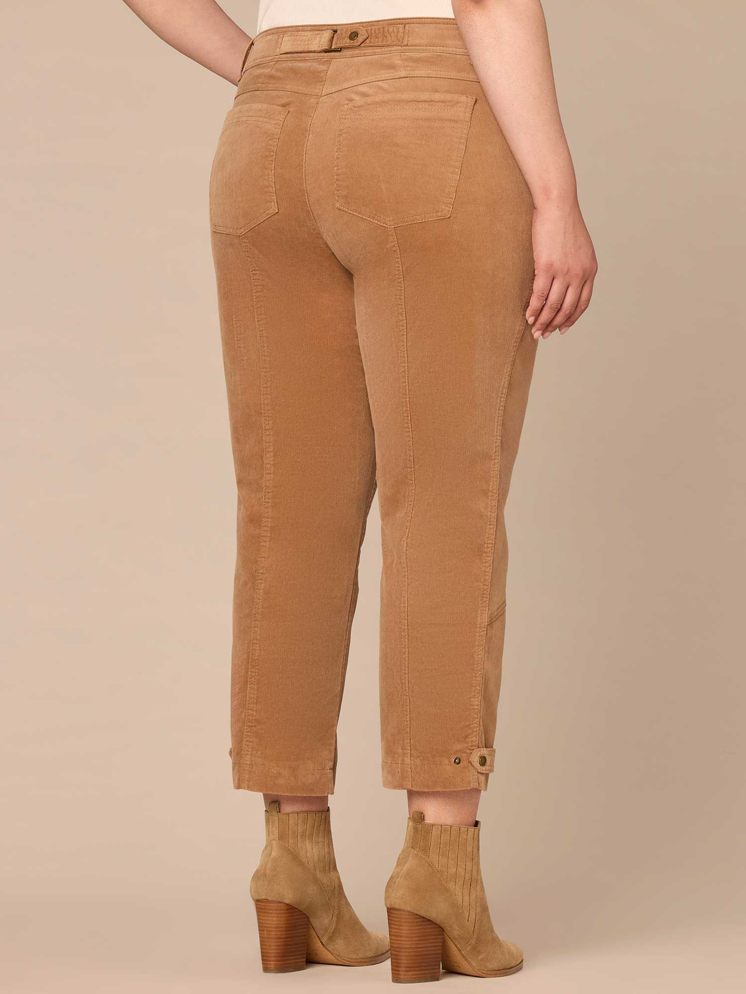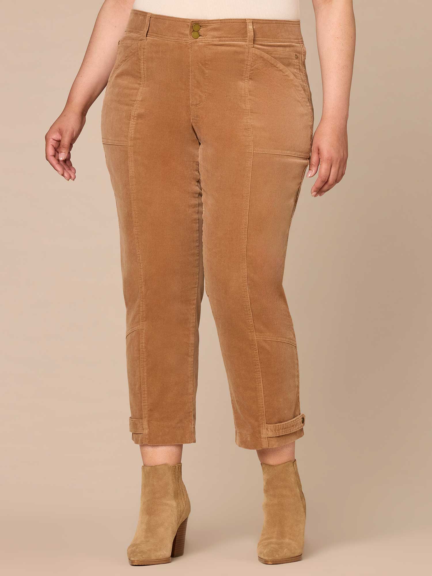 These Tapered Utility pants in plus sizing feature a relaxed fit through the hips and an easy, straight leg through the thigh with a tapered snap hem. Engineered with “Ab”solution® fit technology to smooth, support, and enhance your shape—giving you everything from a flatter tummy to a perkier rear view.