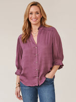 Quick viewLong Blouson Sleeve Mandarin Collar Half Placket Mixed Media Knit Top $58.00 USD /Heather CreamHeather NavyHeather WineberryAvailable in 3 colors