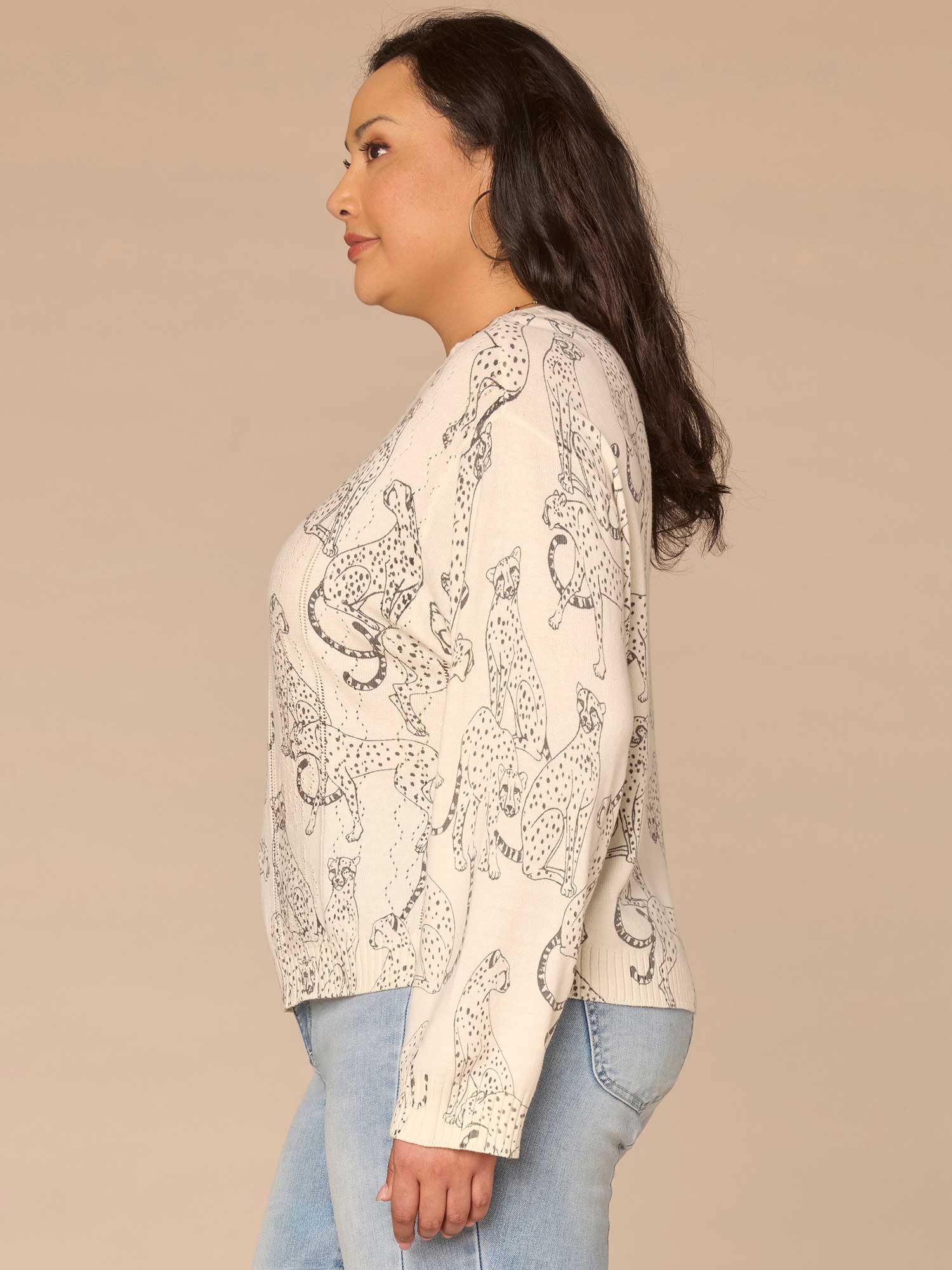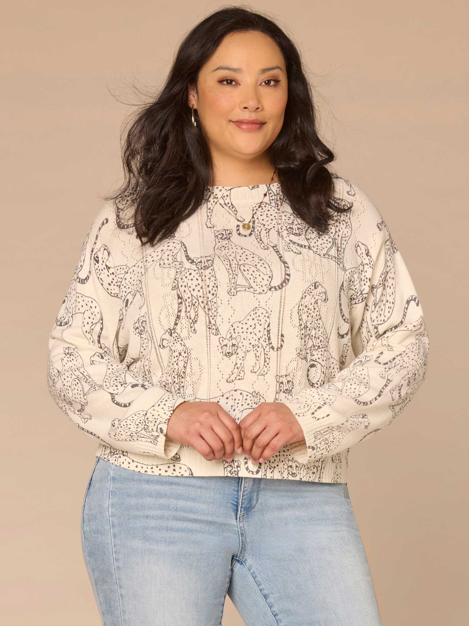 This light pullover sweater in plus sizing suits all occasions, whether you pair it with your favorite jeans or elevated trousers. It has long straight sleeves, a ribbed boat neck, animal print, and an open work design that looks great layered over a tank top.