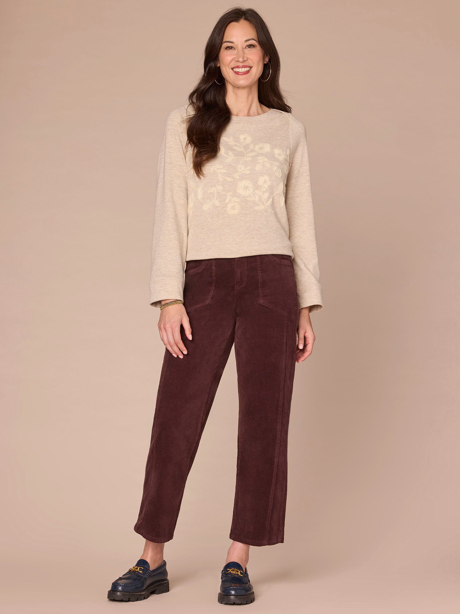 Bell Long Sleeve Boat Neck Knit Top with Embroidery