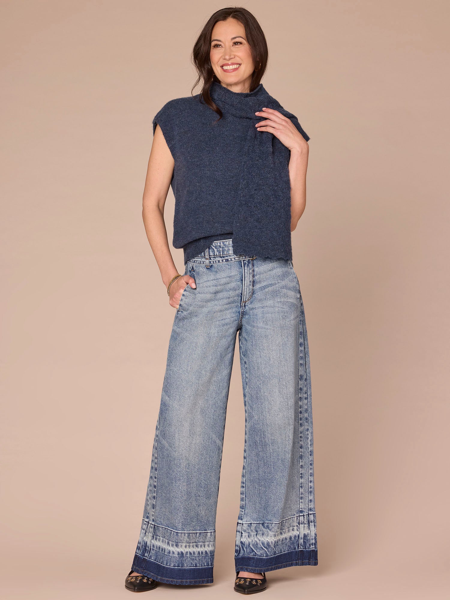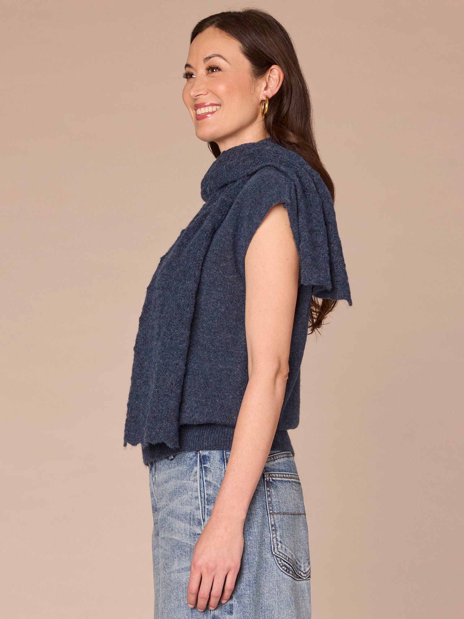 Extended Shoulder Round Neck Sweater Vest with Pointelle Scarf