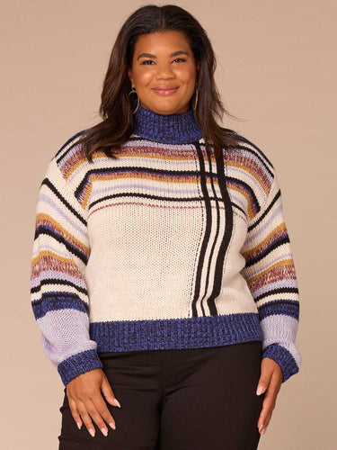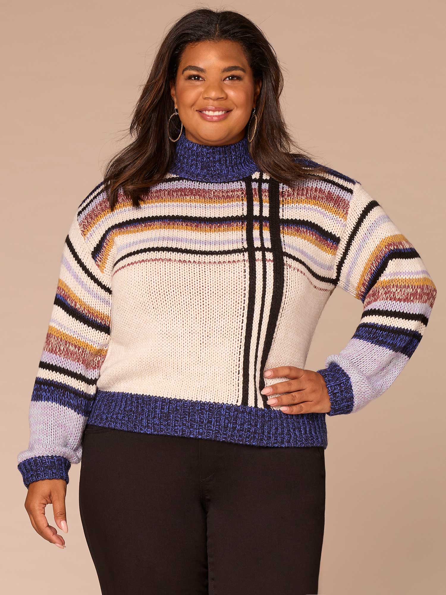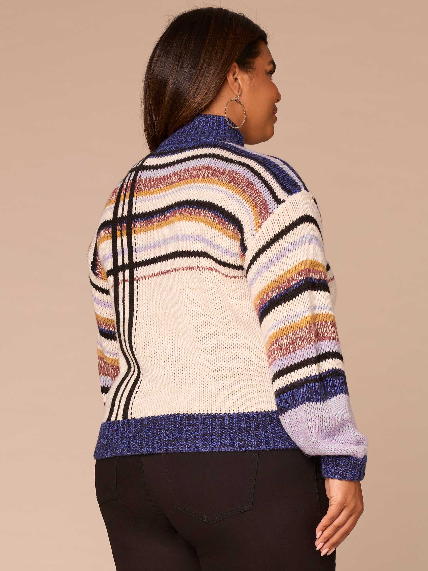 Long Sleeve Mock Neck Placement Stripe Plus Size Sweater