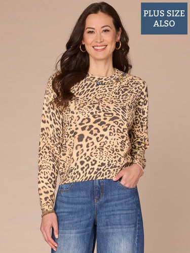 This animal print sweater in plus sizing adds fun details to your look with ease. Featuring long sleeves, a round neck with sequin embroidery, and a straight hem, you can pair it with everything from blue jeans to trousers.