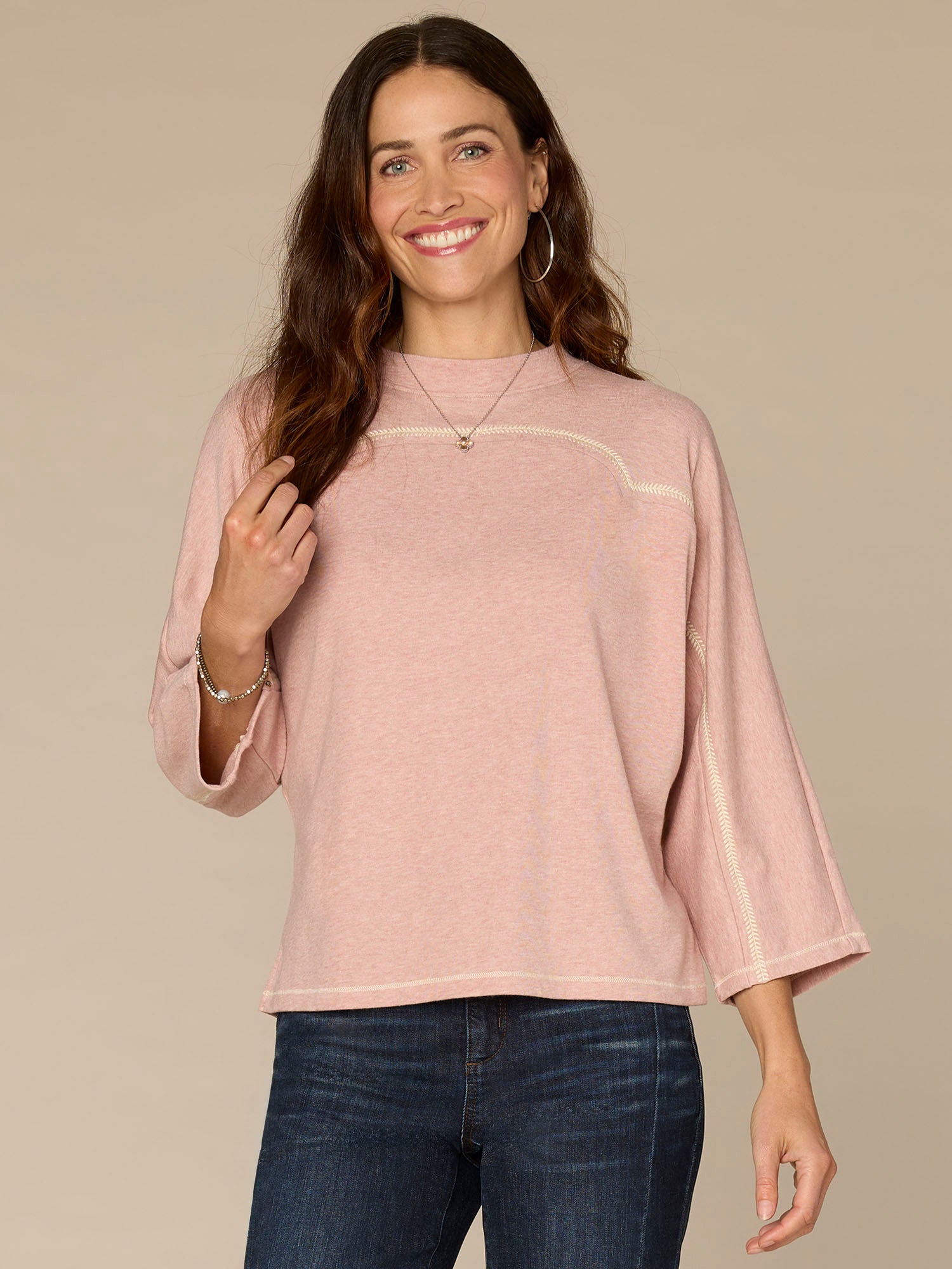 • Three quarter dolman sleeve