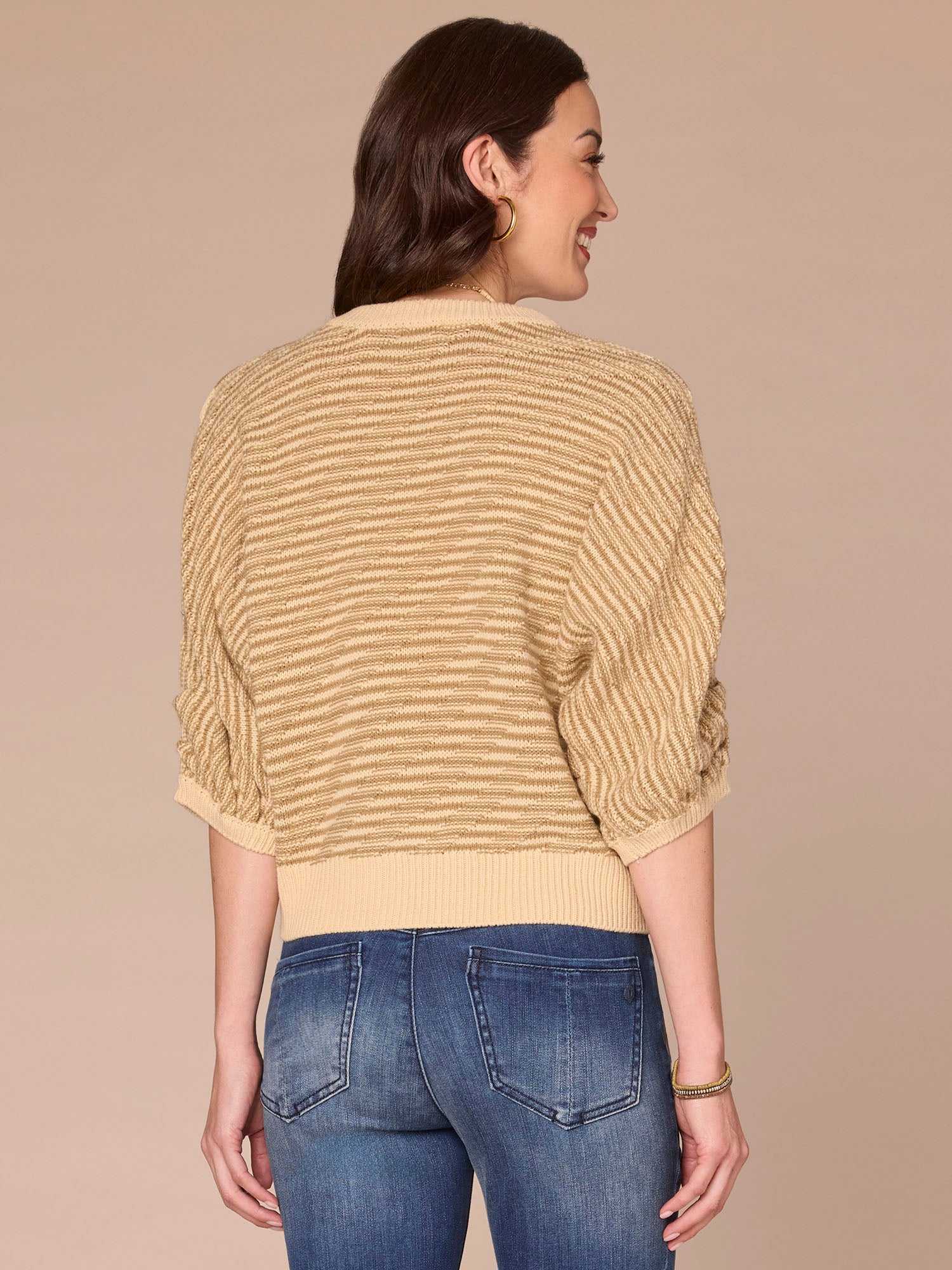 Three Quarter Dolman Sleeve Round Neck Banded Hem Bias Stitch Sweater