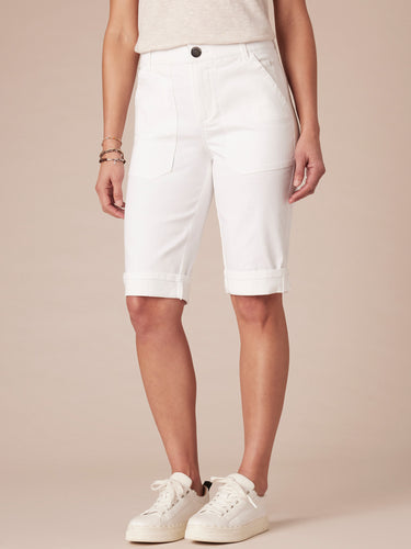 The white Bermuda shorts in petite sizing hug your shape from the hip with a relaxed fit through the above-knee hemline. Engineered with "Ab"solution® fit technology to smooth, support, and enhance your shape—giving you everything from a flatter tummy to a perkier rear view.