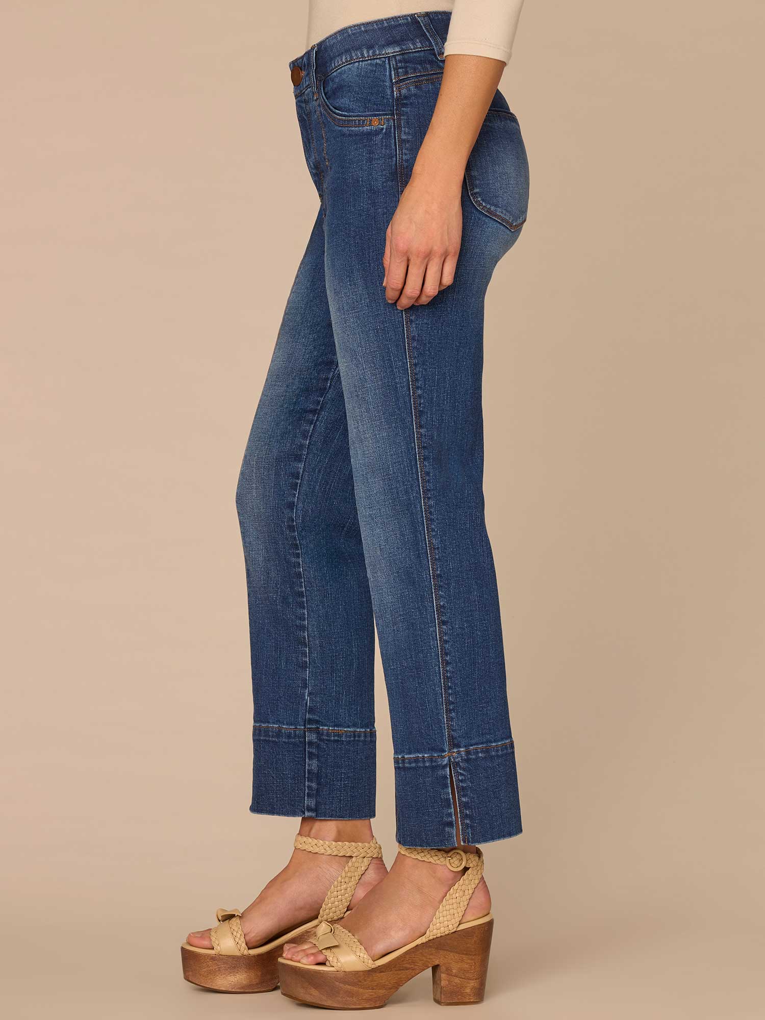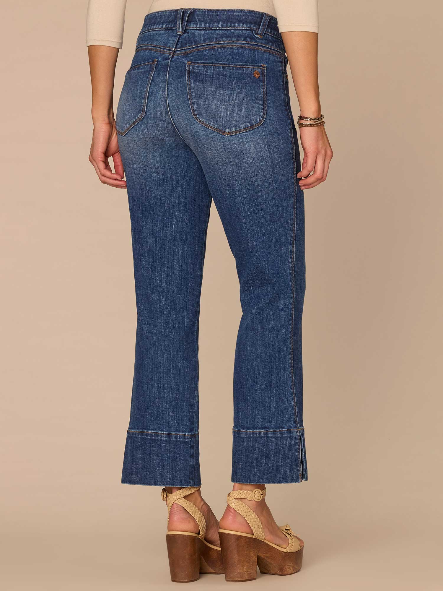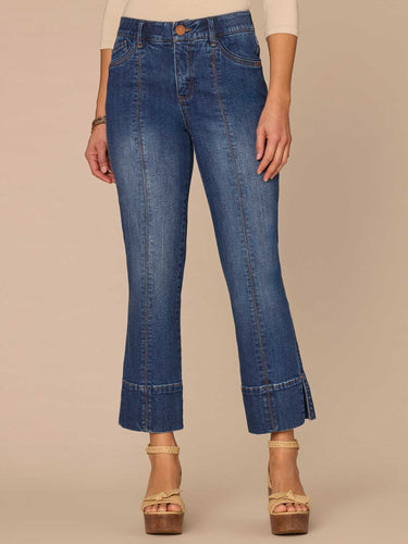 The "Ab"solution® Kick Flare jean is fitted through the hips with a subtle flare at the cropped slit hem. Engineered with our signature fit technology to smooth, support, and enhance your shape — giving you everything from a flatter tummy to a perkier rear view.