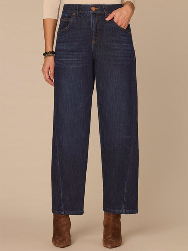 The petite Barely Barrel Leg is slightly fitted at the hips, with a relaxed, subtle curve from the thighs that tapers back at the ankle. Engineered with "Ab"solution® fit technology to smooth, support, and enhance your shape—giving you everything from a flatter tummy to a perkier rear view.