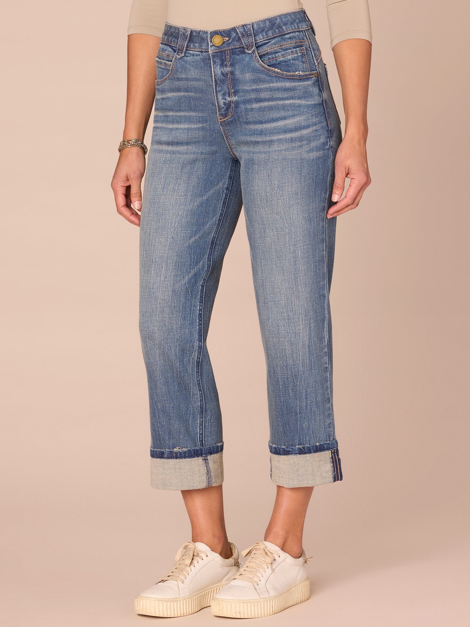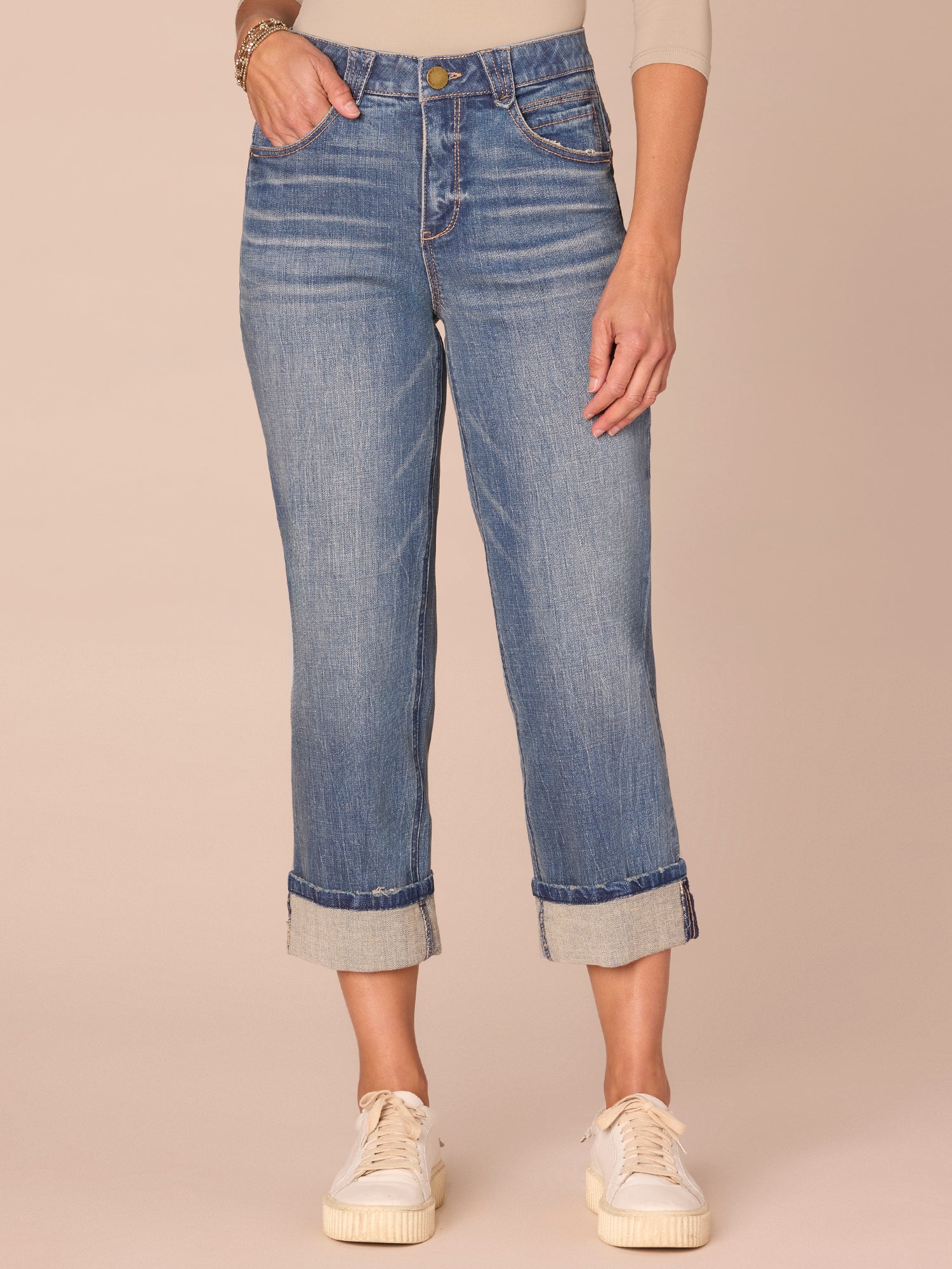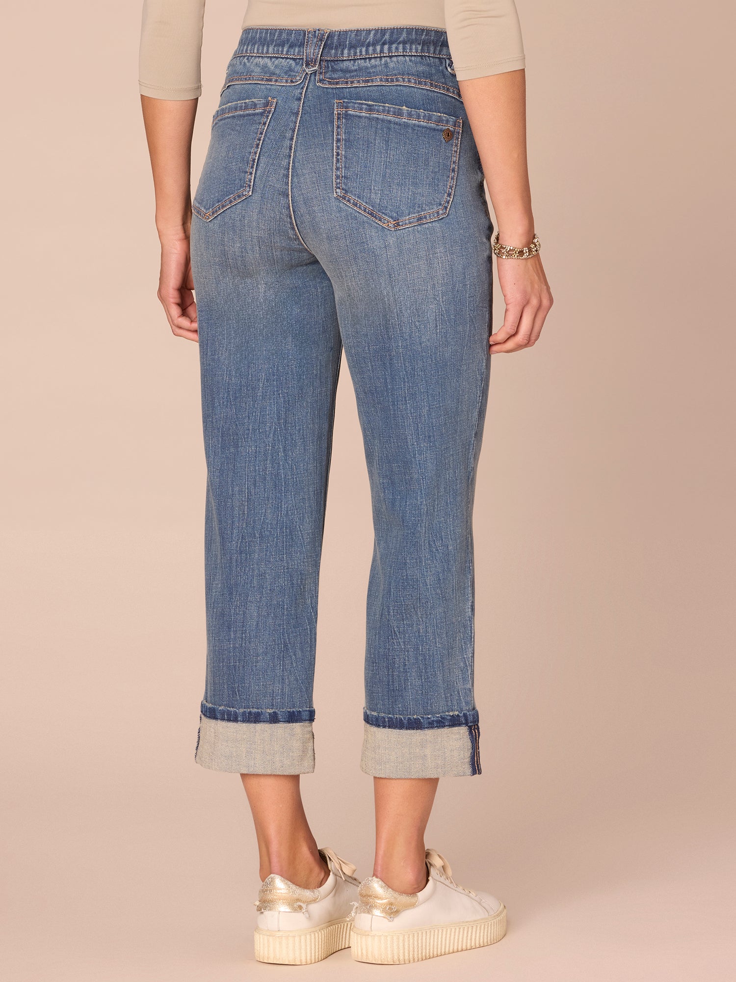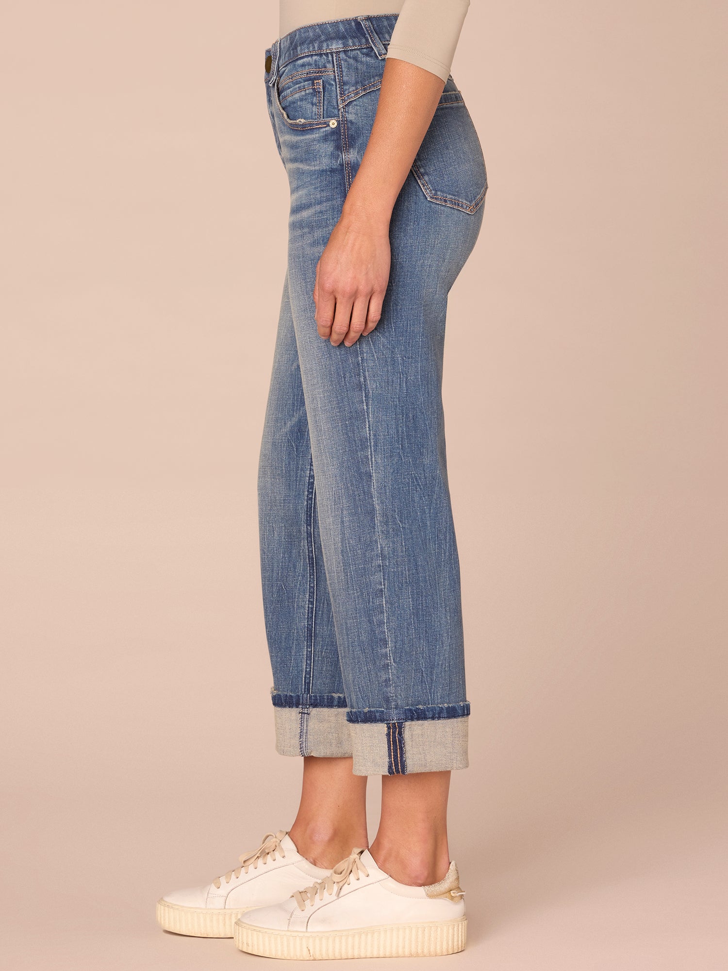 • Cropped roll cuff hem