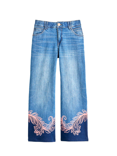 “Ab”solution® High Rise Wide Leg Jeans with Screen Print Hem