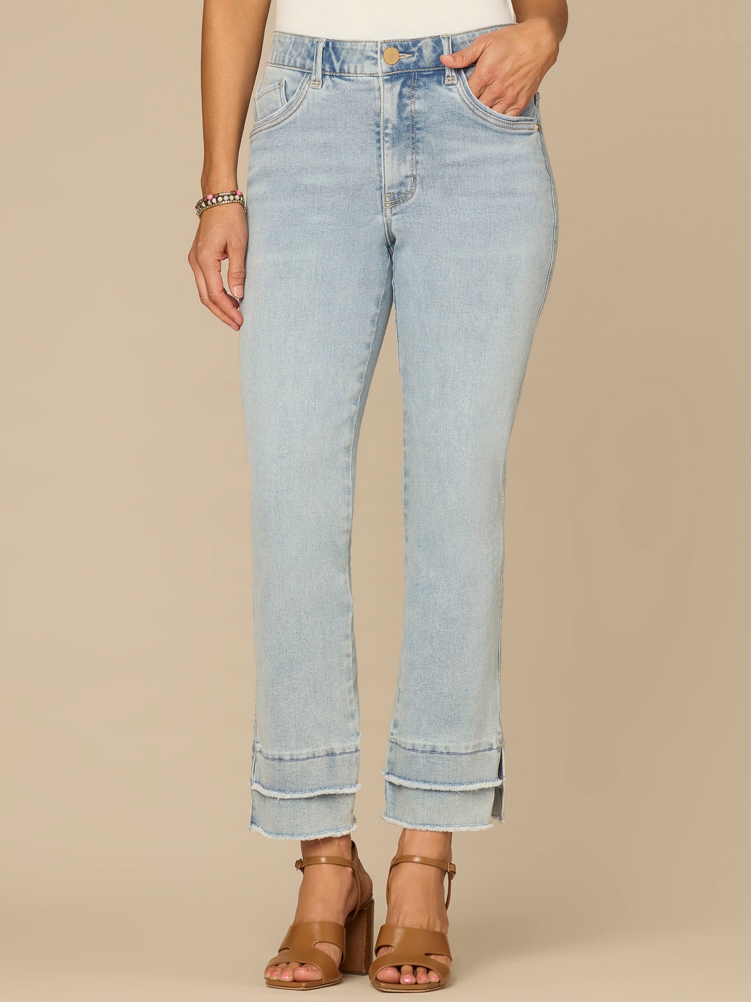 “Ab”solution® Mid-Rise Double Layer Fray Hem Petite Kick Flare Jeans
