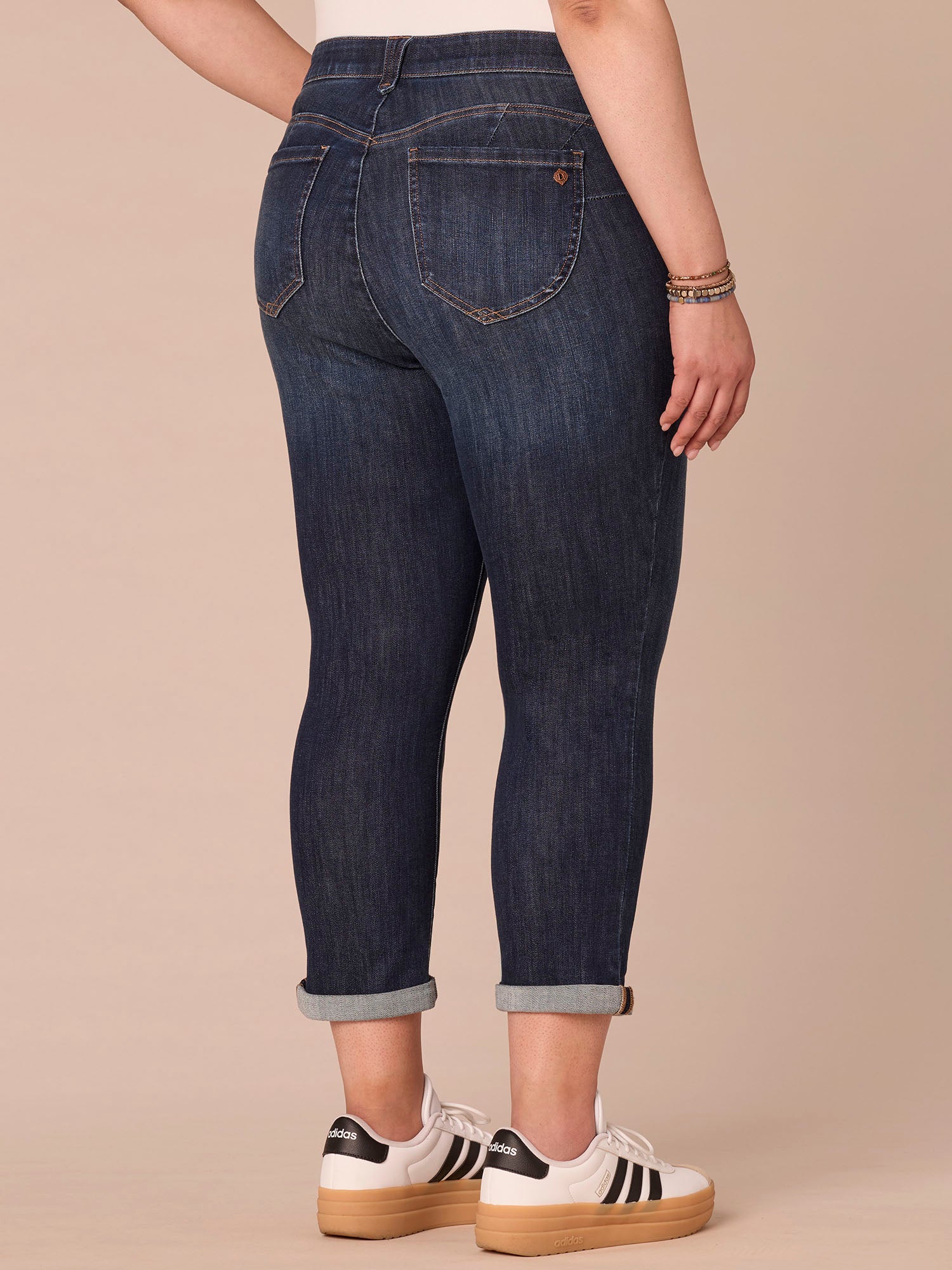 “Ab”solution® Mid-Rise Indigo Roll Cuff Plus Size Ankle Skimmer Jeans