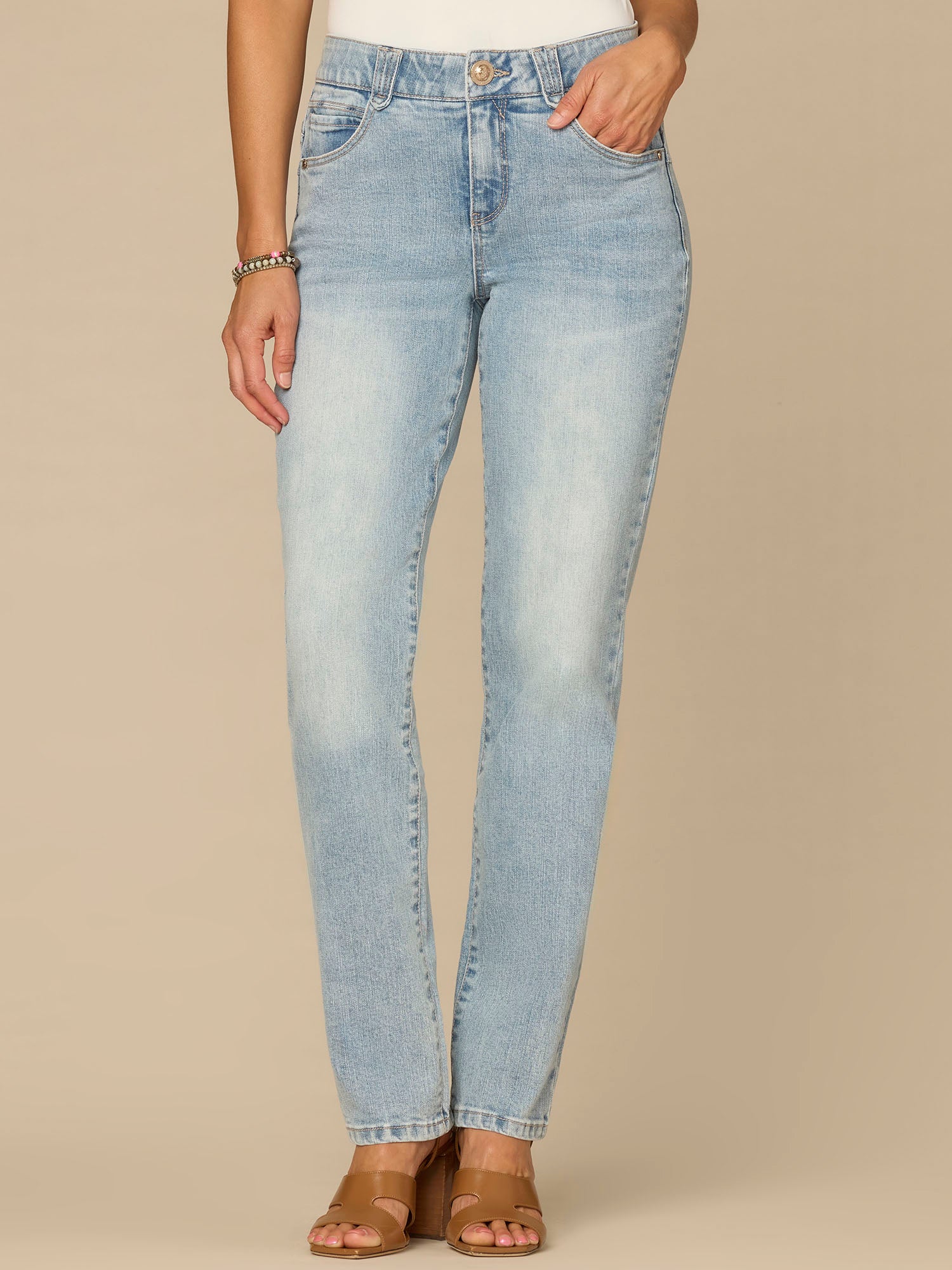The petite Straight Leg jean offers a timeless silhouette with a relaxed, slightly slim straight leg that’s easy to wear from day to night. Designed with "Ab"solution® fit technology to smooth, support, and enhance your shape—for comfortable support and a flattering, lifted look.