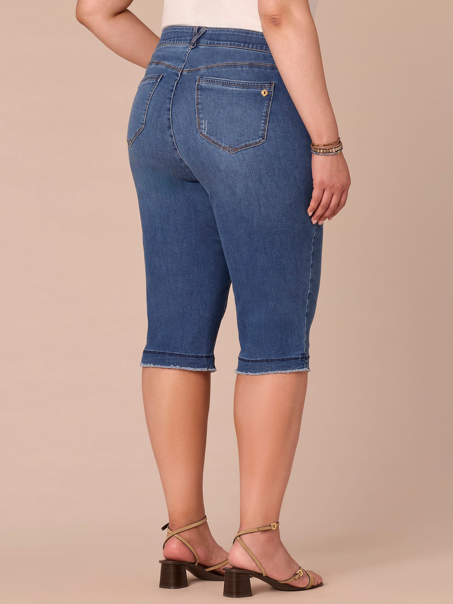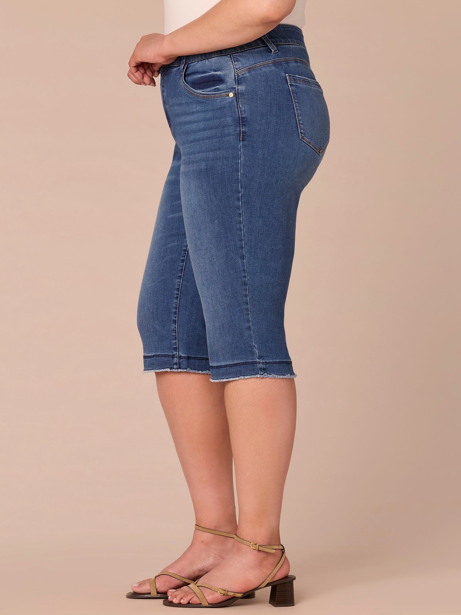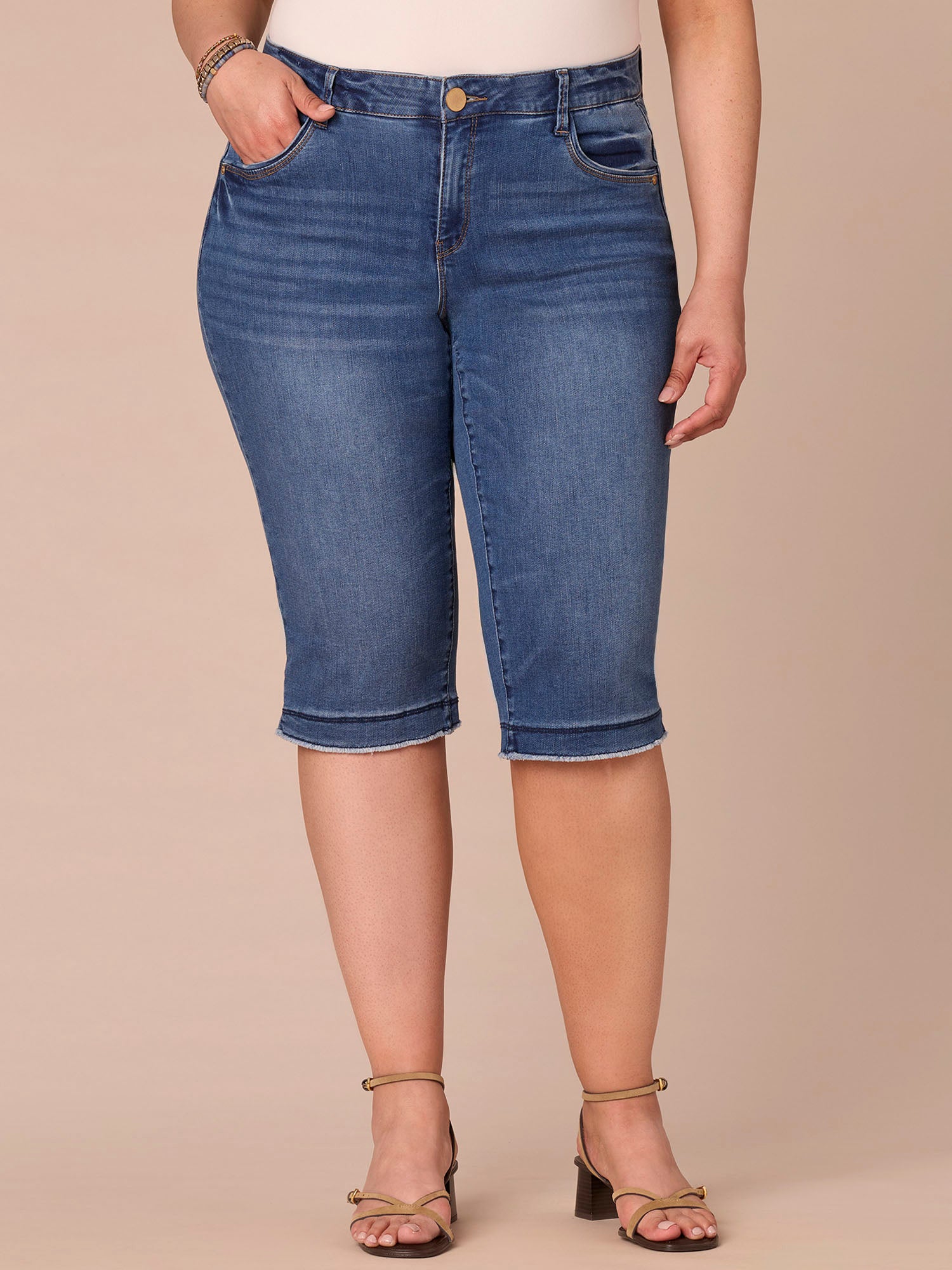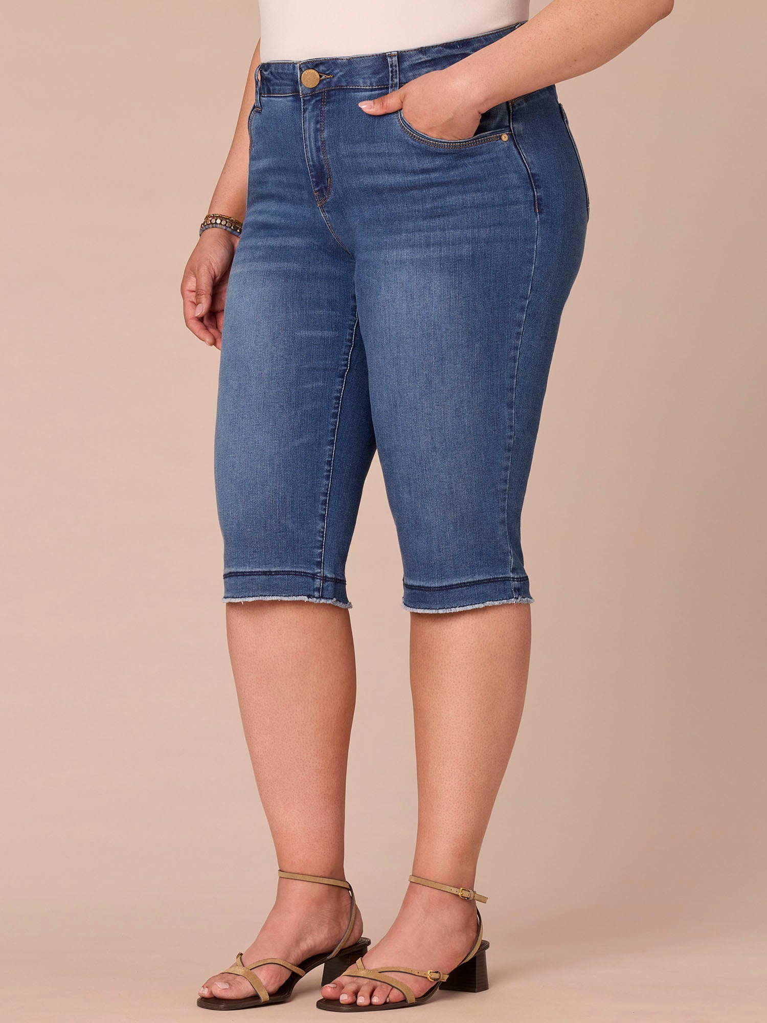 “Ab”solution® Mid-Rise Mid Blue Artisanal Fray Plus Size Skimmer Jeans