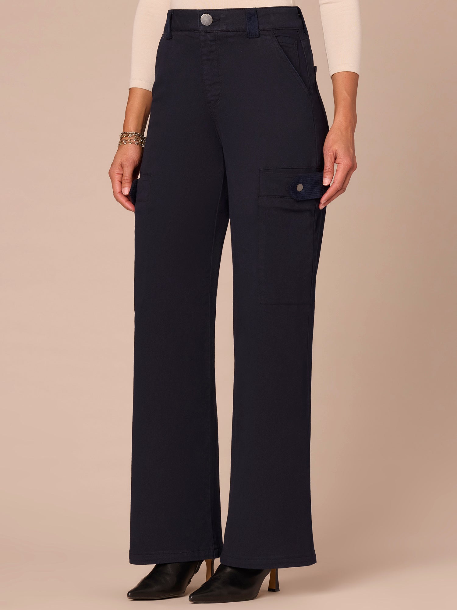 The petite "Ab"solution® Wide Leg is fitted through the hips with a relaxed, wide opening through the legs. Engineered with our signature fit technology to smooth, support, and enhance your shape, as well as an eight-pocket styling and corduroy contrast.
