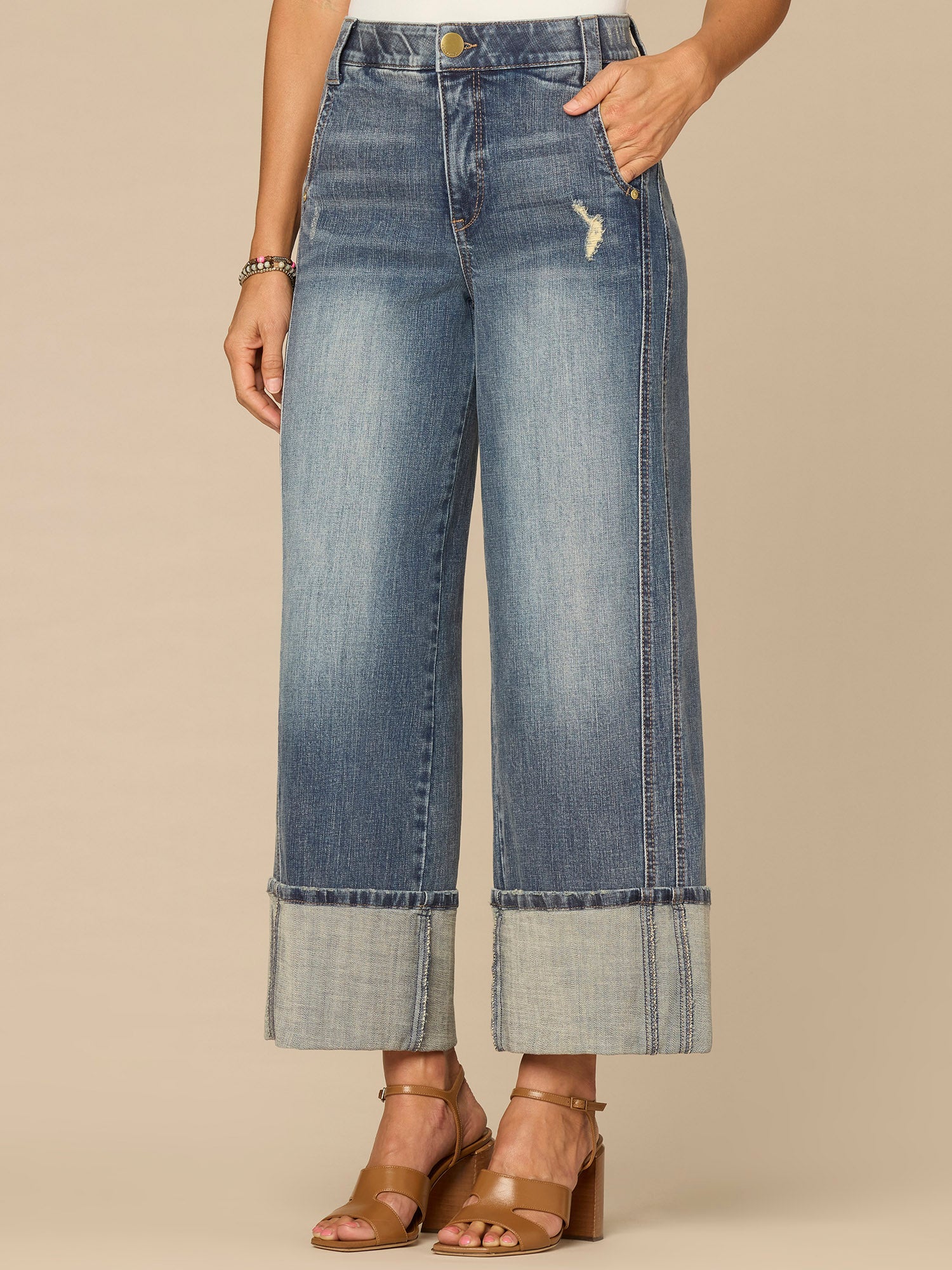 “Ab”solution® Skyrise Forward Side Seam Wide Leg Jeans with Cuff