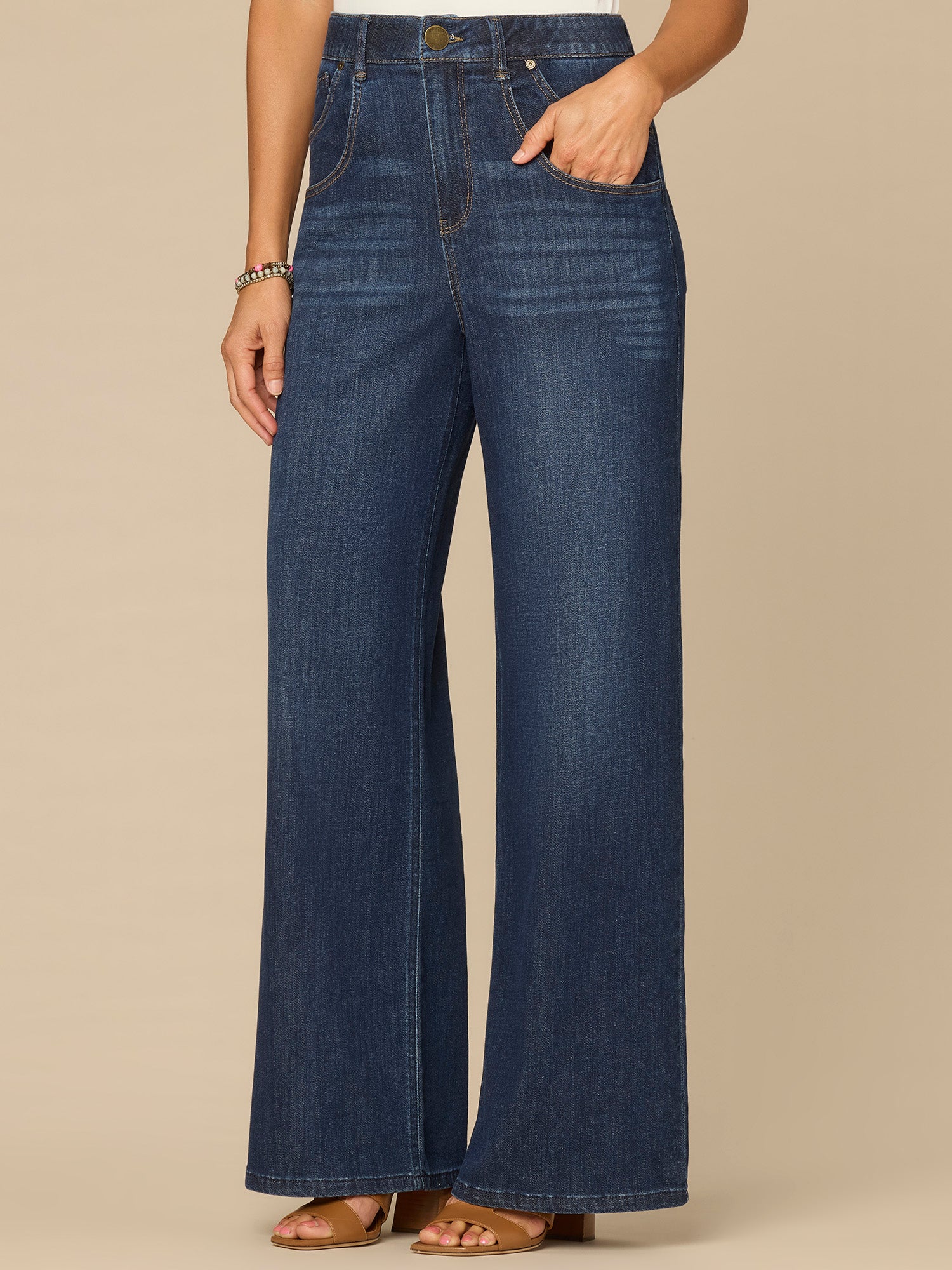 The petite "Ab"solution® Wide Leg is fitted through the hips with a relaxed, wide opening through the legs. Engineered with our signature fit technology to smooth, support, and enhance your shape—giving you everything from a flatter tummy to a perkier rear view.