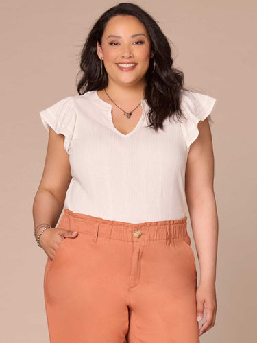 From its flutter cap sleeves to the round split neck and mixed media design, this knit top in plus sizing is filled with on-trend details. It’s a guaranteed outfit enhancer.