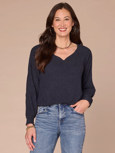 Feminine, flirty, and on-trend, this soft petite knit top features long blouson sleeves, a sweetheart neck, pintucking details, and a cased hem. Perfect for office days and date night alike.