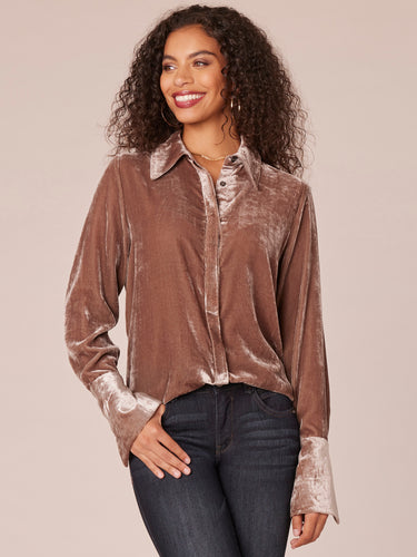 Long French Cuff Sleeve Button Down Velvet Woven Shirt