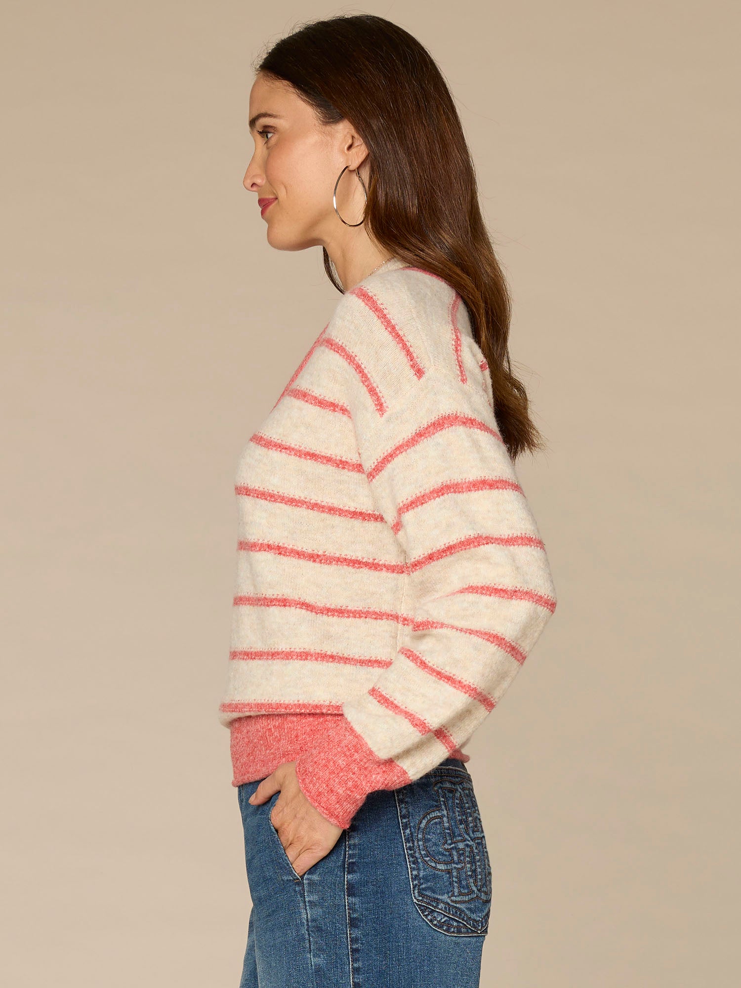 Long Sleeve V-Neck Novelty Stripe Stitch Twofer Petite Sweater