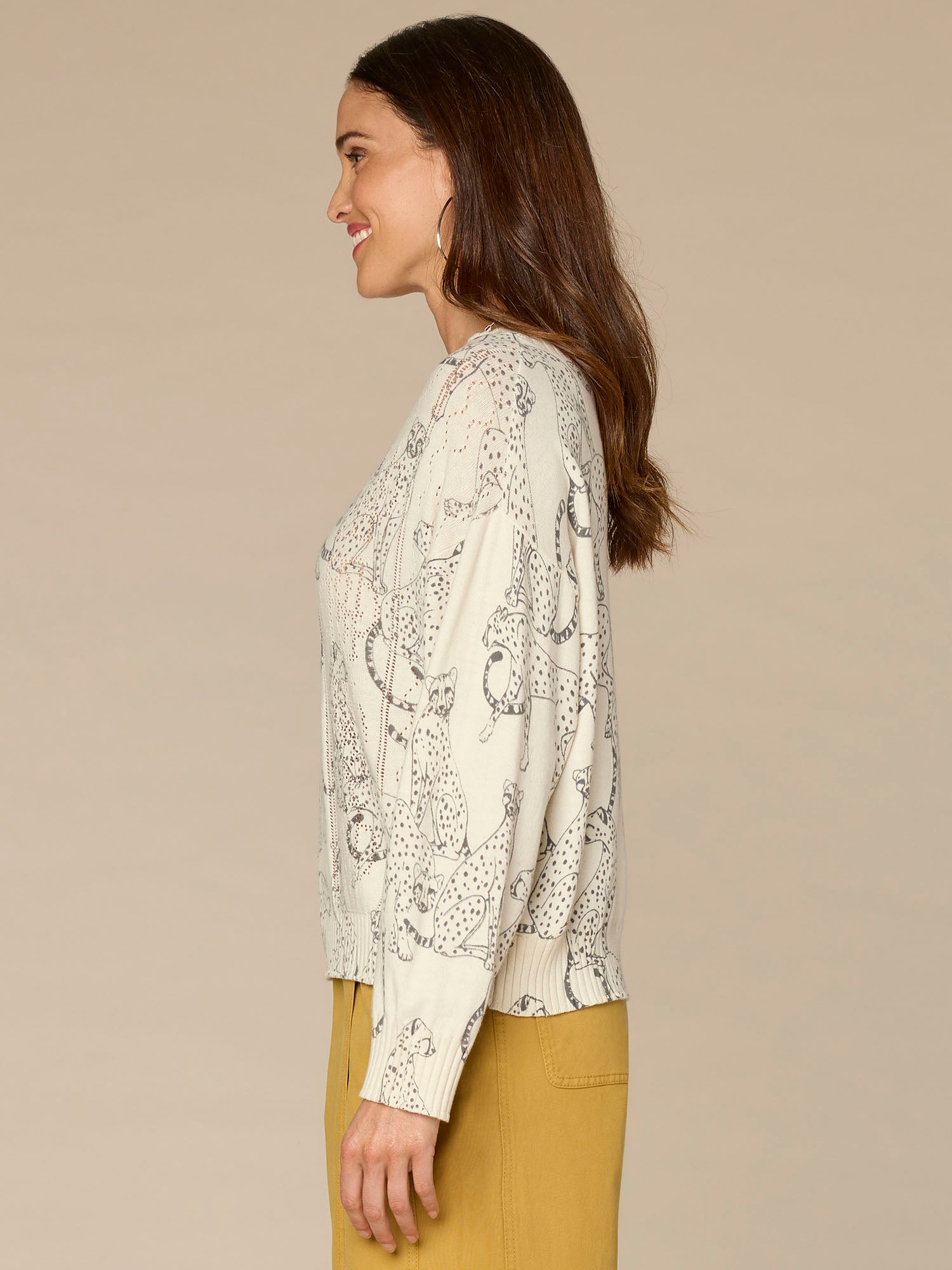 This light pullover sweater in petite sizing suits all occasions, whether you pair it with your favorite jeans or elevated trousers. It has long straight sleeves, a ribbed boat neck, animal print, and an open work design that looks great layered over a tank top.