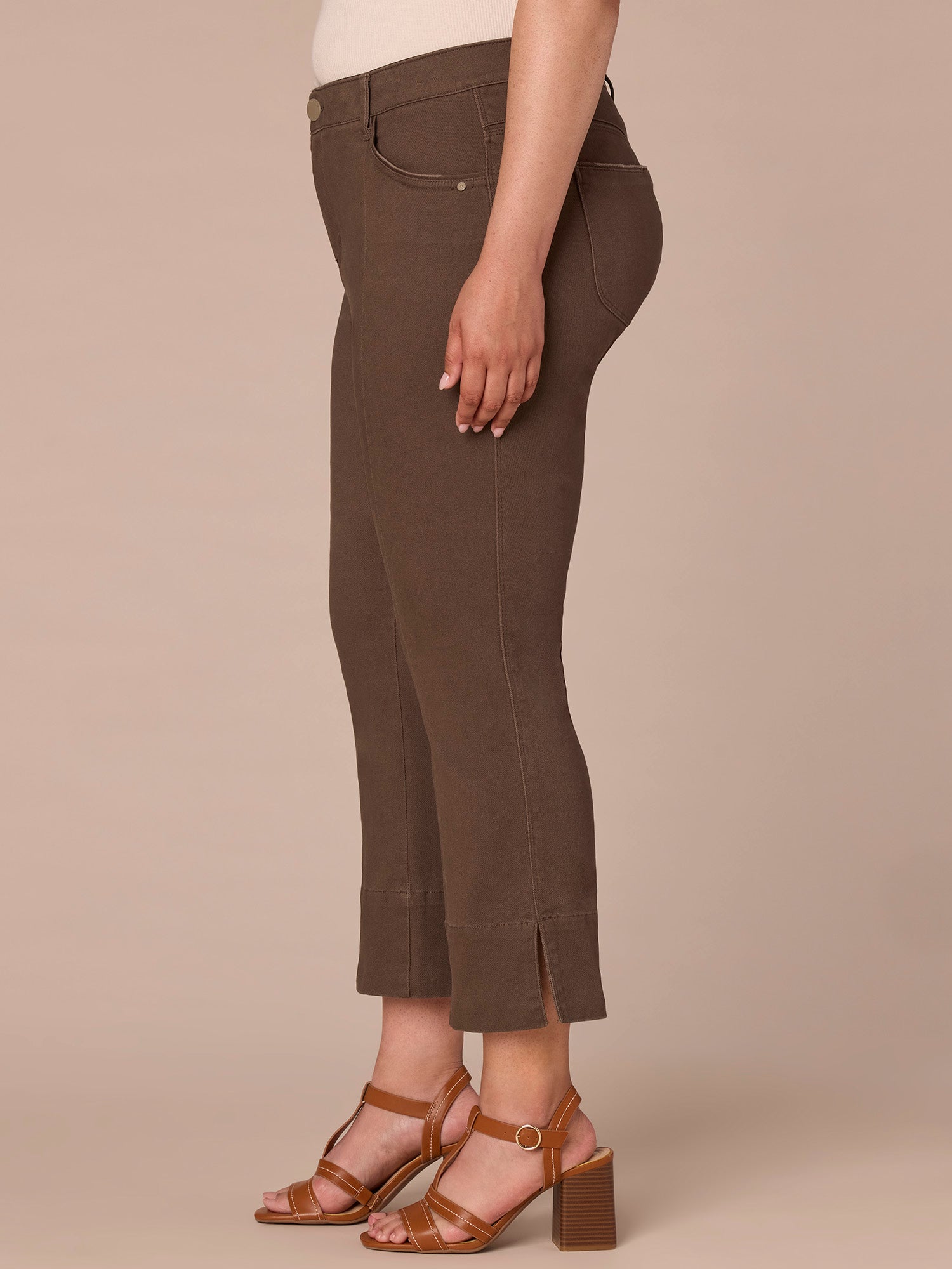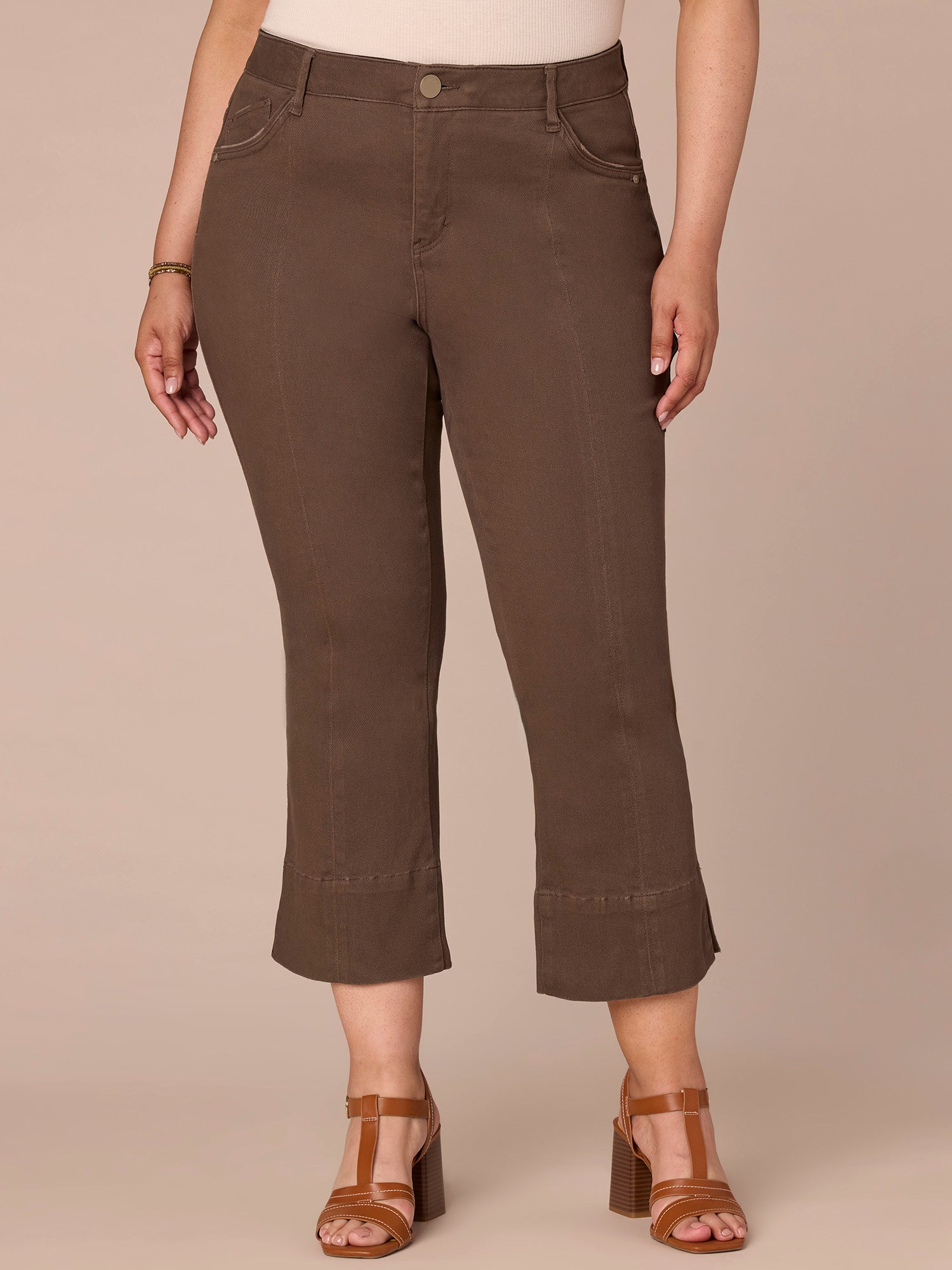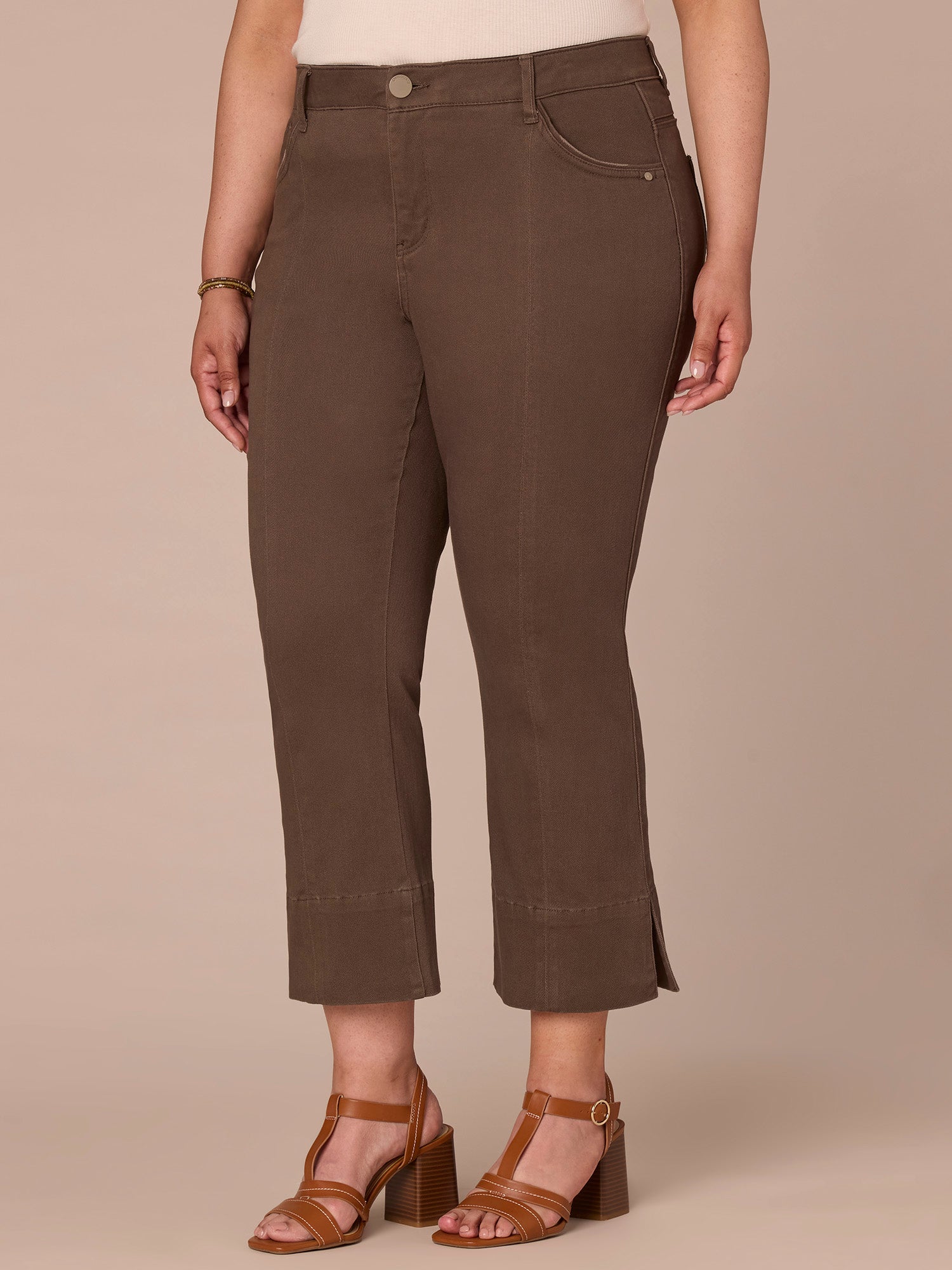 Prepare to meet the style you’ll be wearing on repeat this season. These game-changing “Ab”solution® Kick Flares in plus sizing make chic outfit assembly a breeze, thanks to on-trend design details like curved front pockets, a center seam, and a cropped split hem. With our signature fit technology, these non-denim pants will keep you looking and feeling your best with a sweetheart shaped back yoke and strategically placed back pockets.