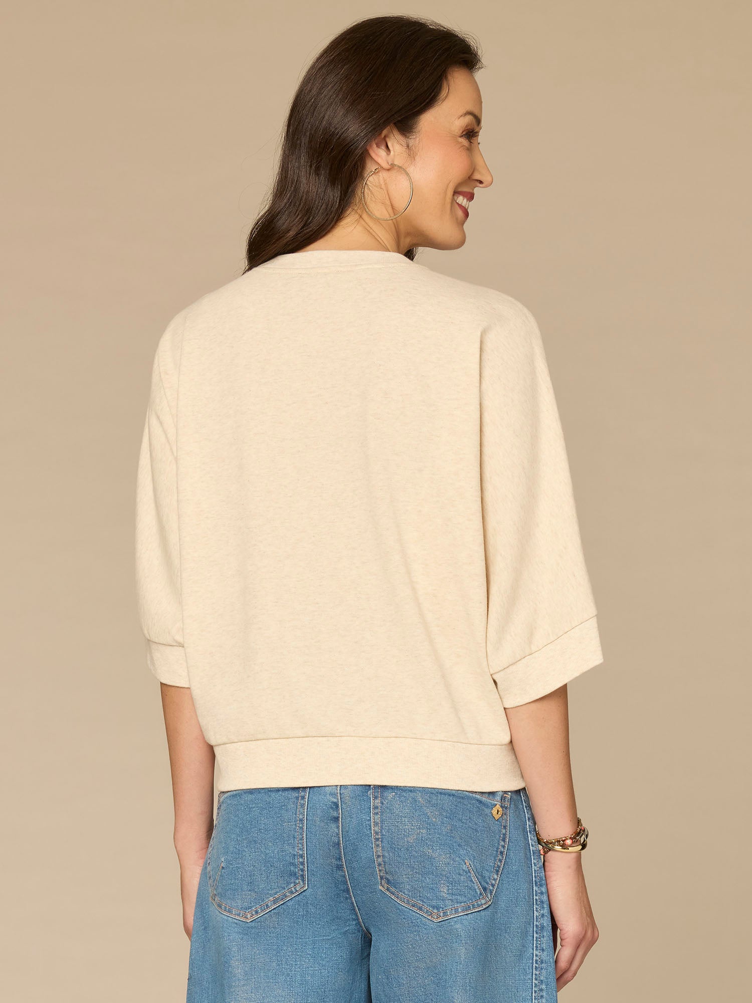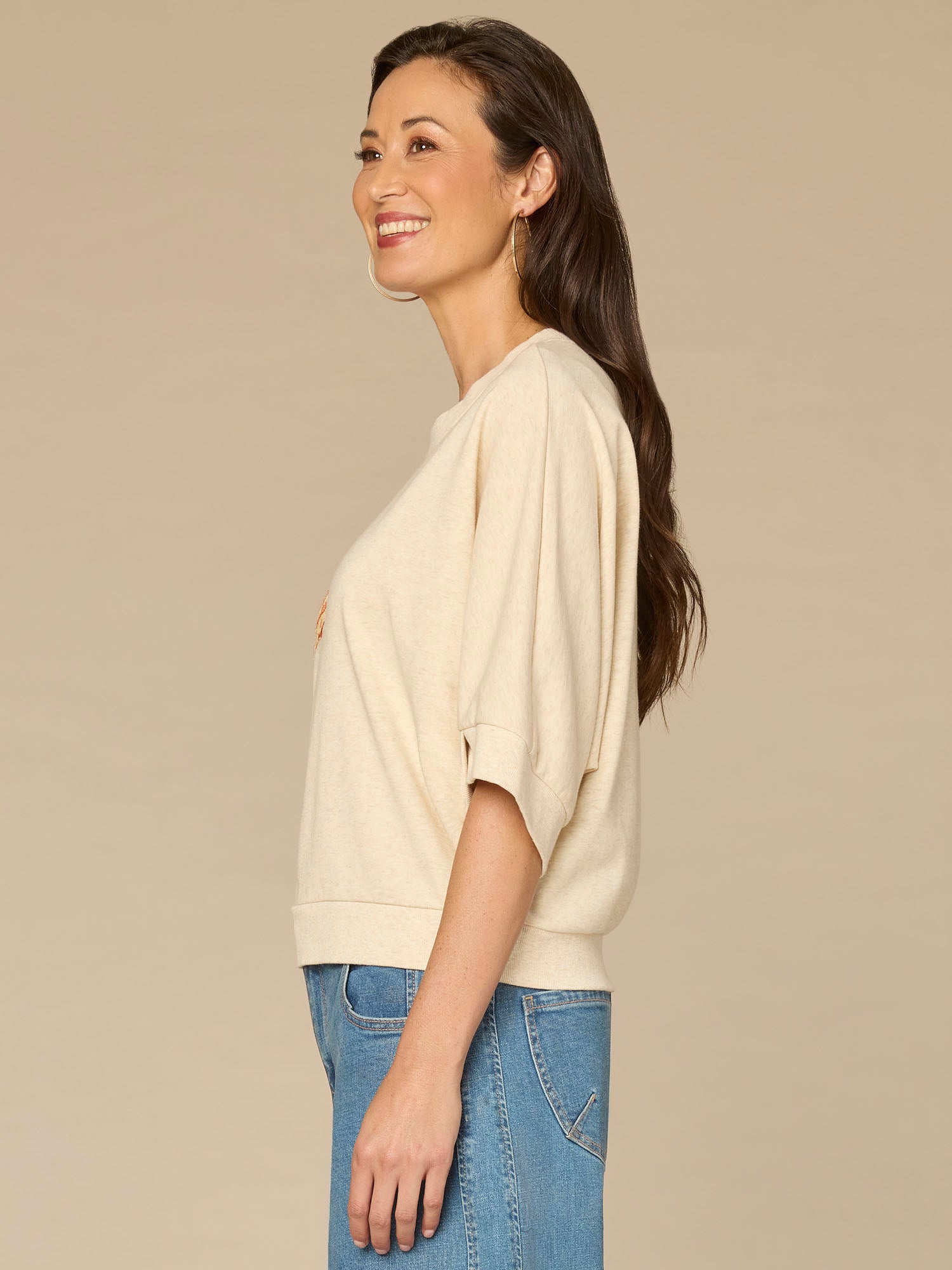 Three Quarter Dolman Sleeve Scoop Neck Embroidered Petite Knit Top