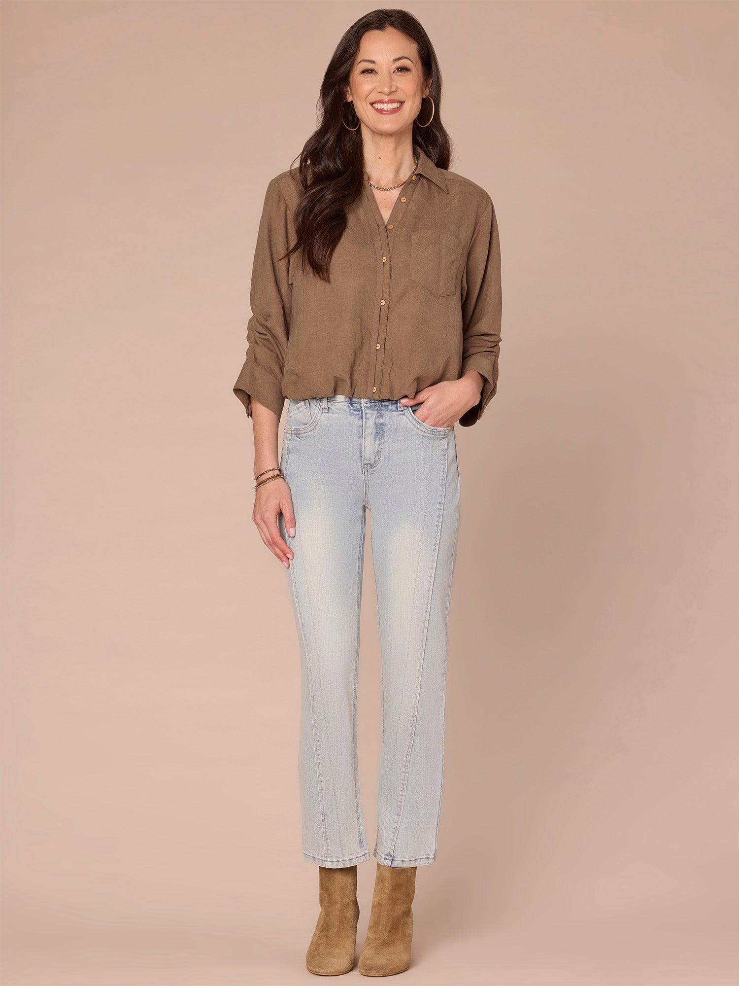 •        Three quarter tucked sleeve