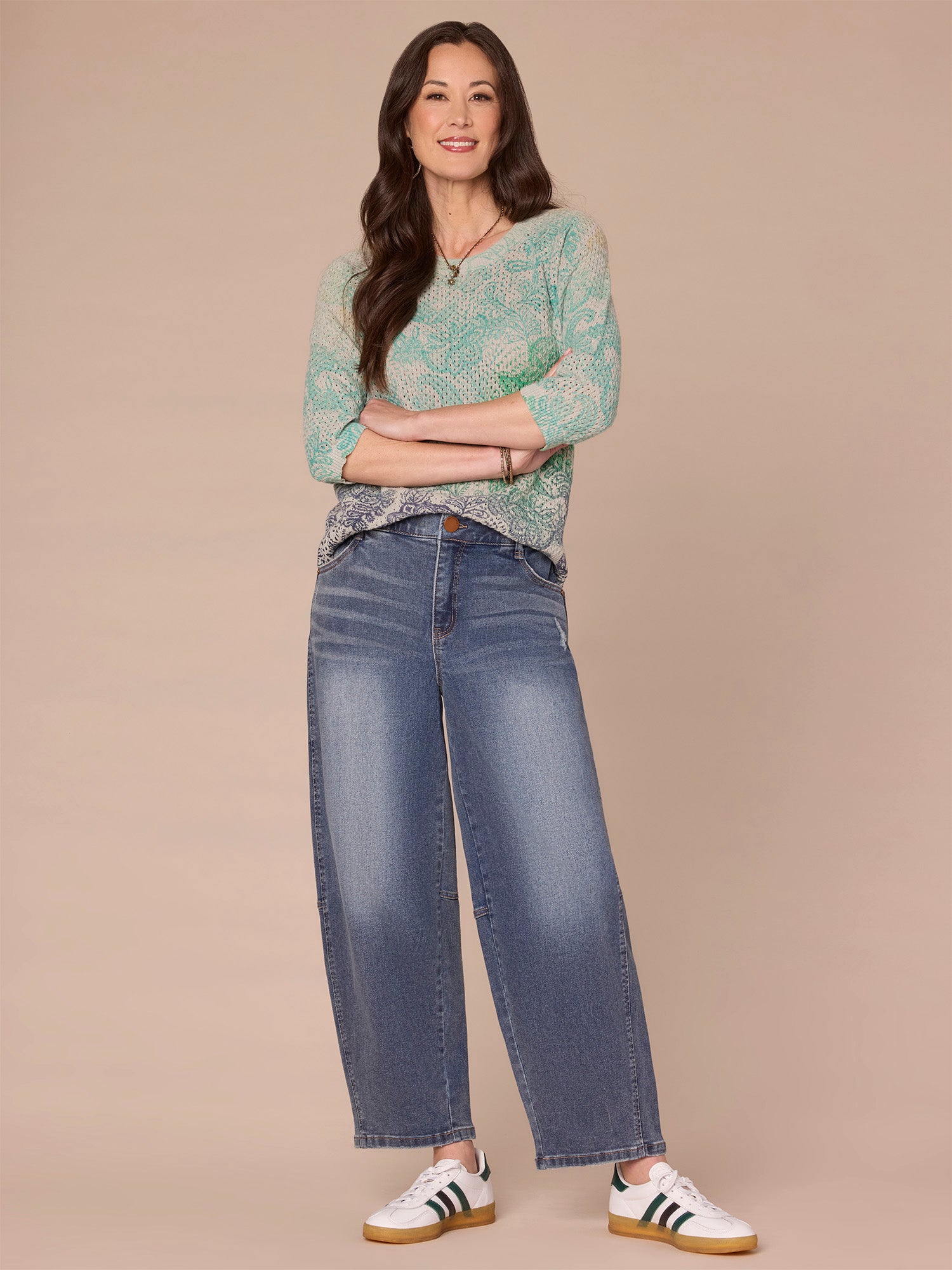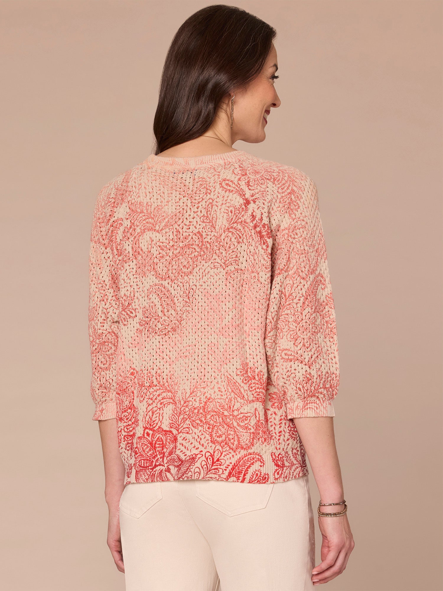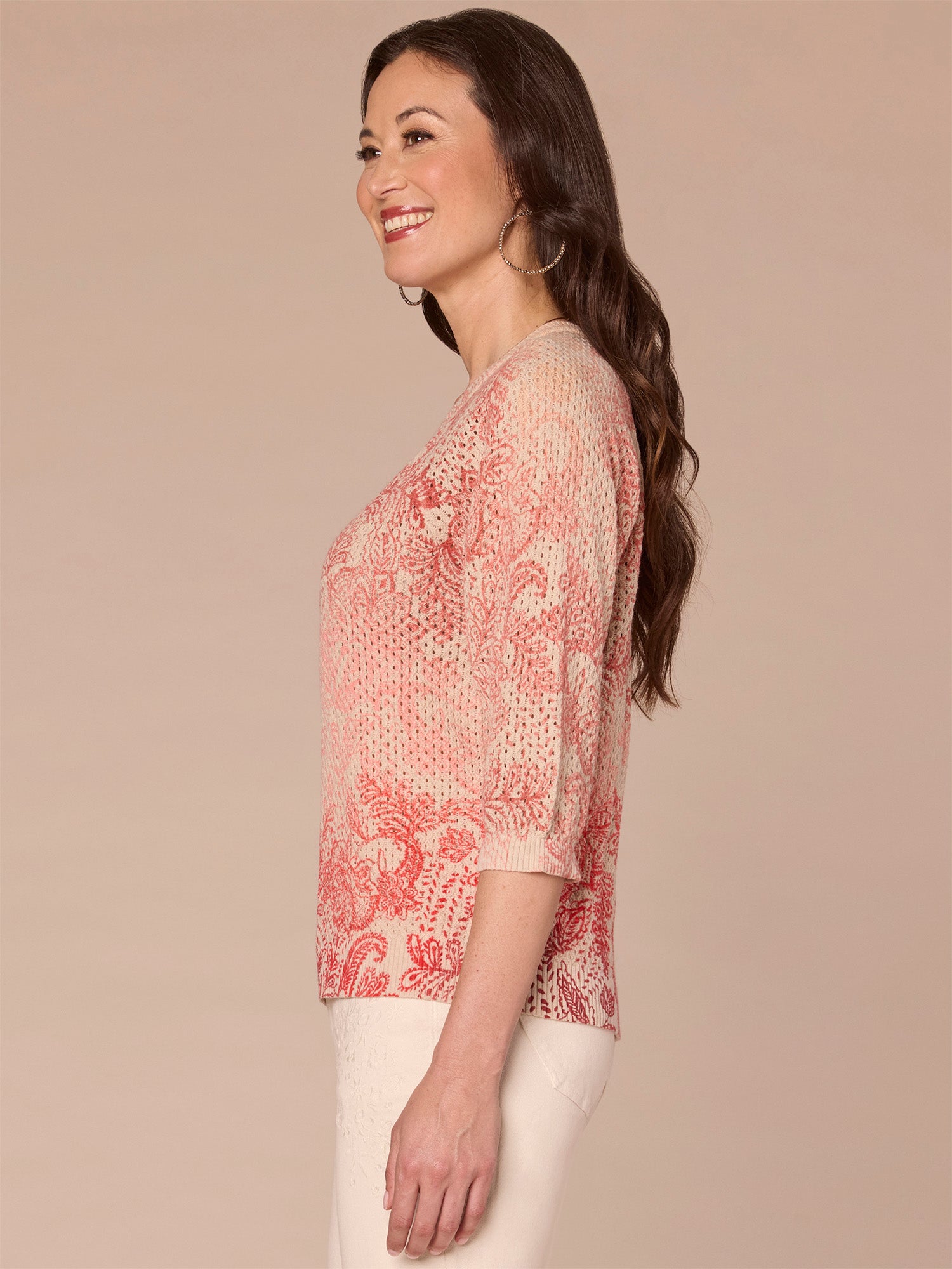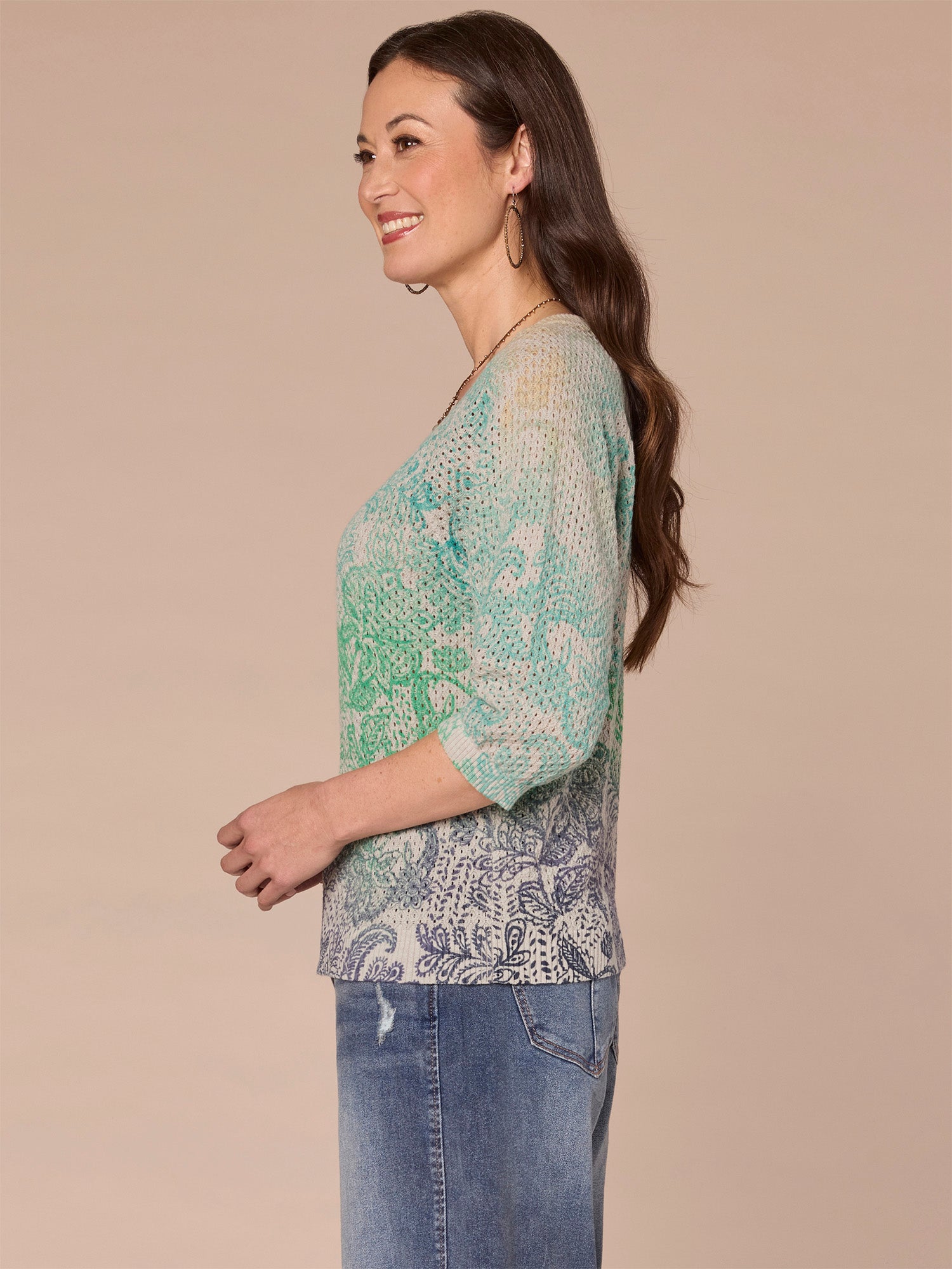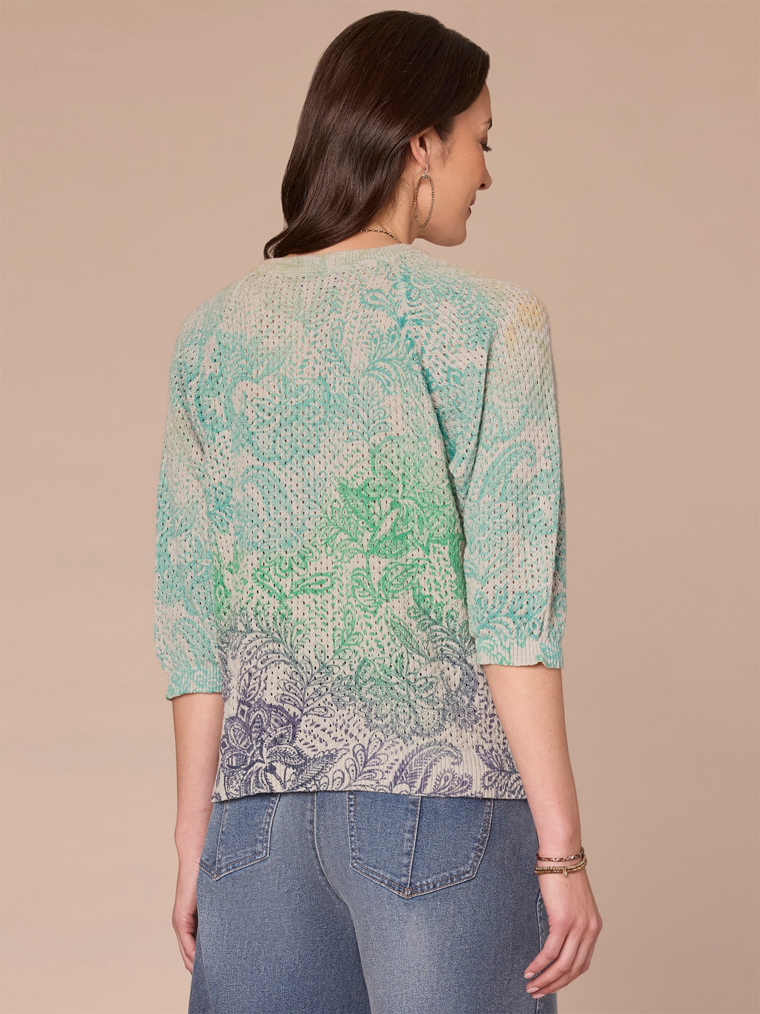 Three Quarter Sleeve Round Neck Ombre Print Petite Sweater